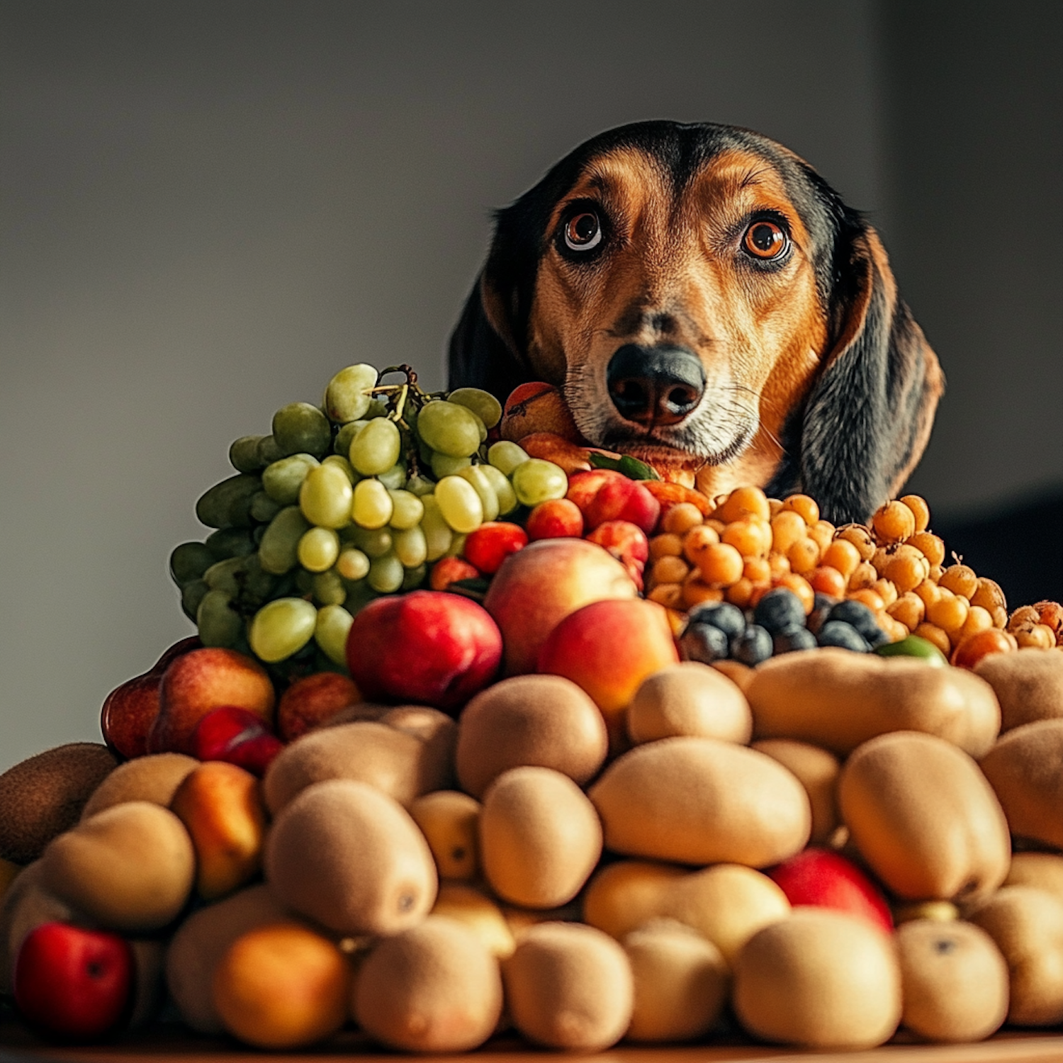 Curious Dog with Fruits