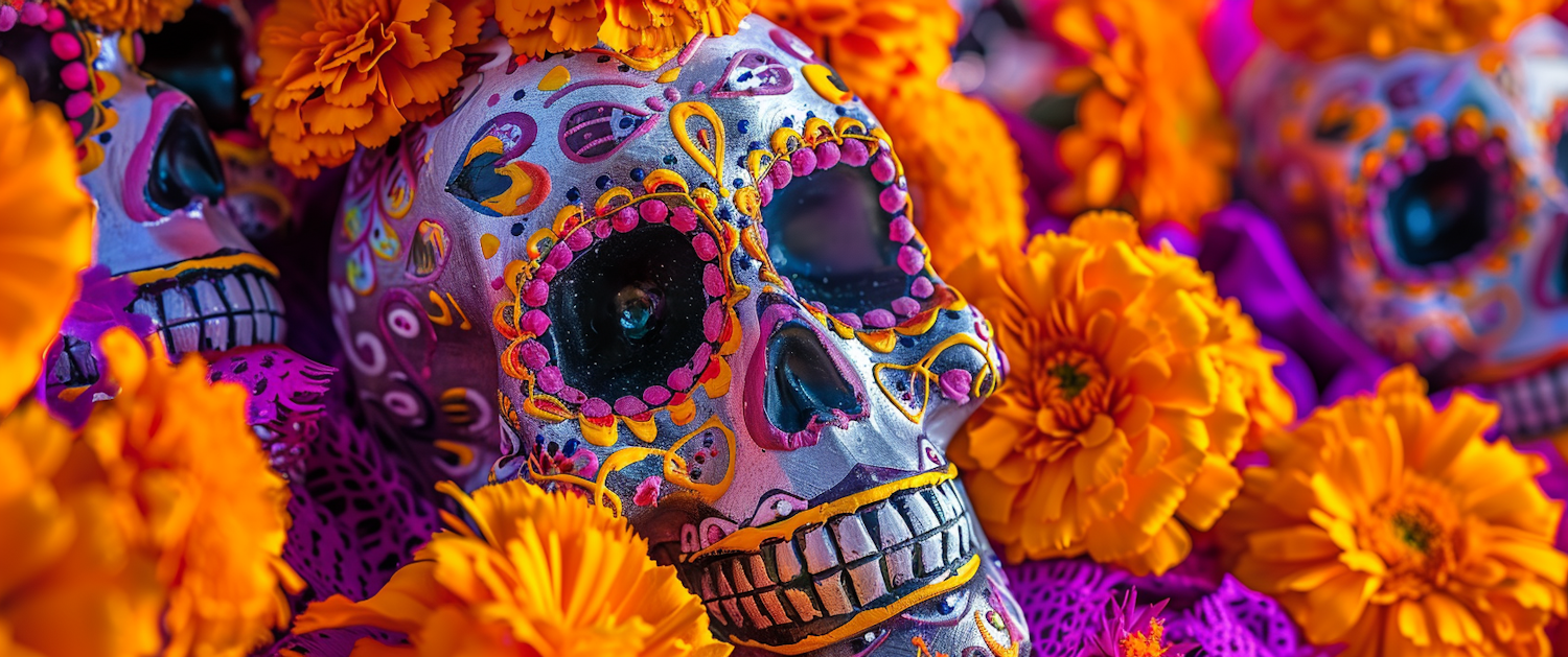 Day of the Dead Celebration with Calaveras and Marigolds