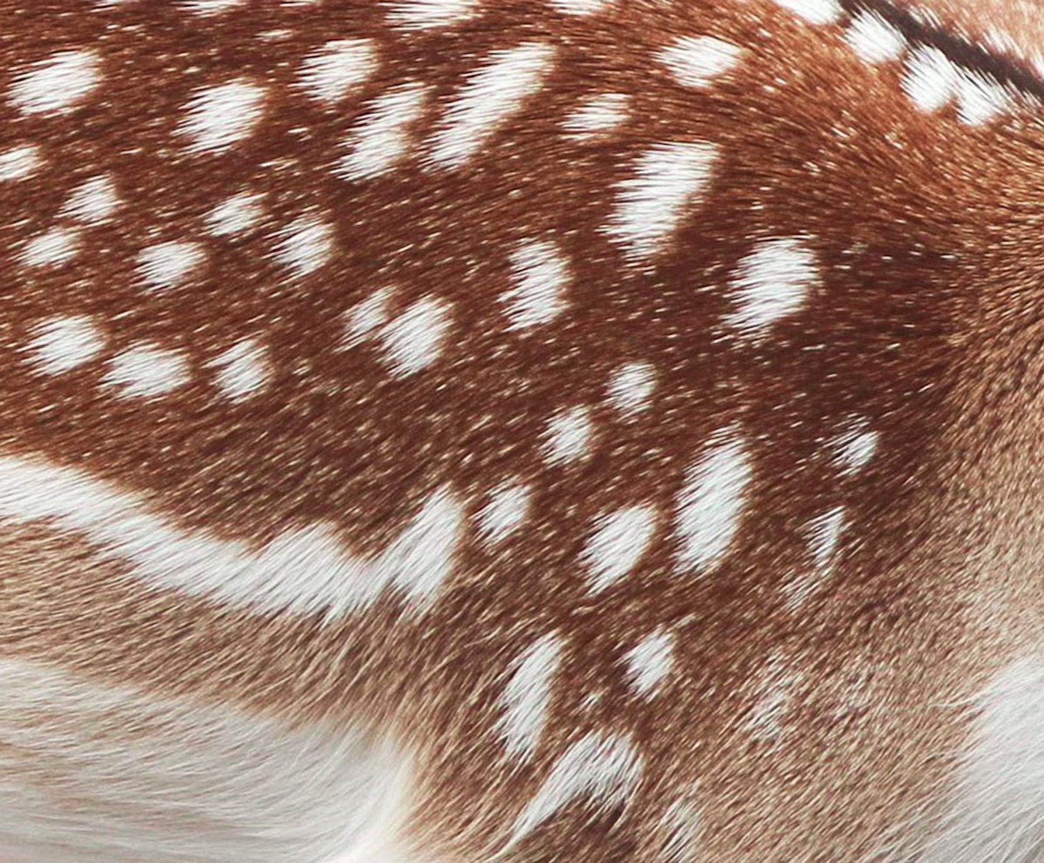 Close-up of a deer’s brown fur with white spots, highlighting the intricate texture and natural pattern of the animal’s coat.