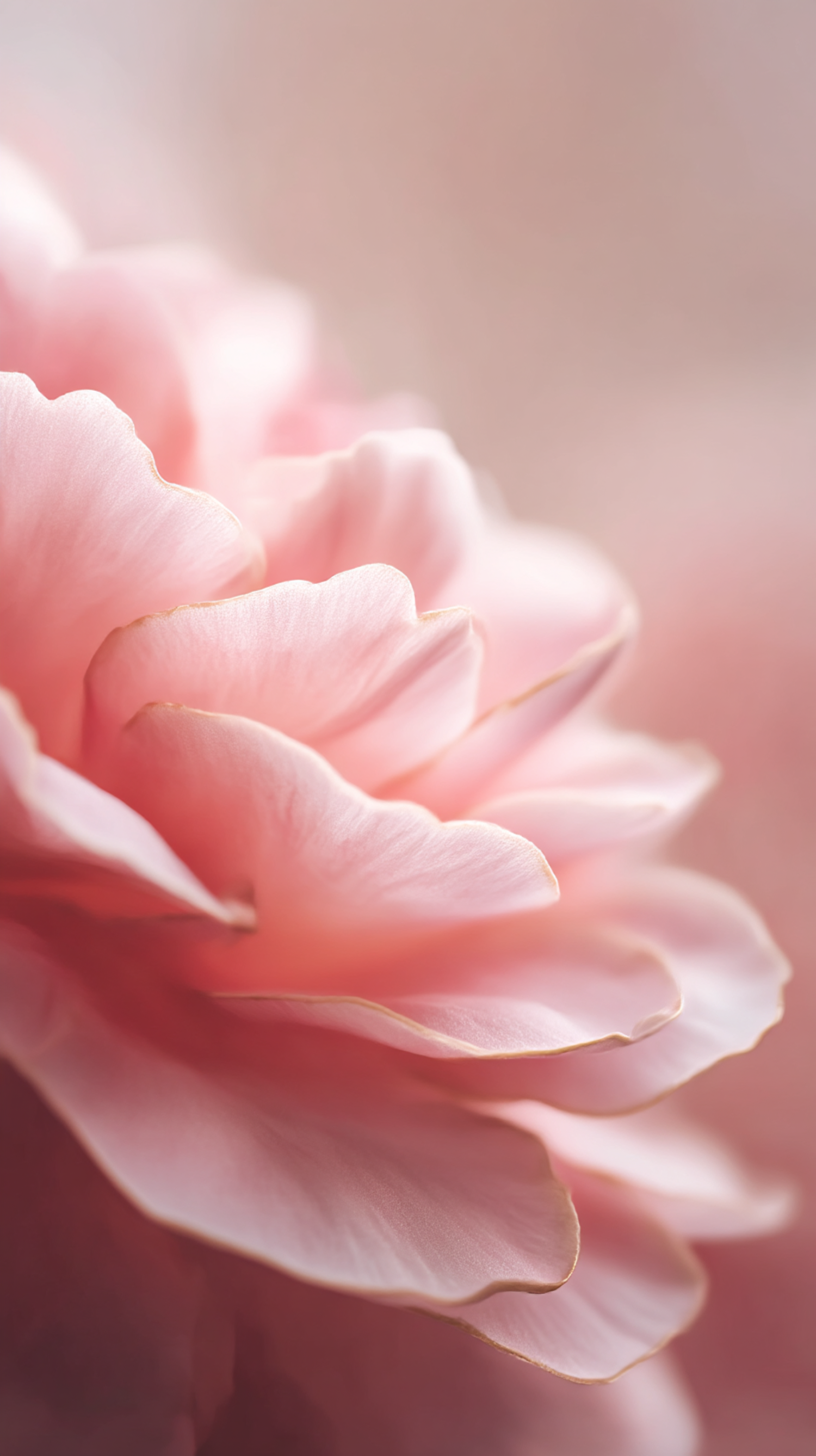 Close-up of a pink flower with soft, layered petals and golden edges, set against a blurred background for a delicate and elegant look.
