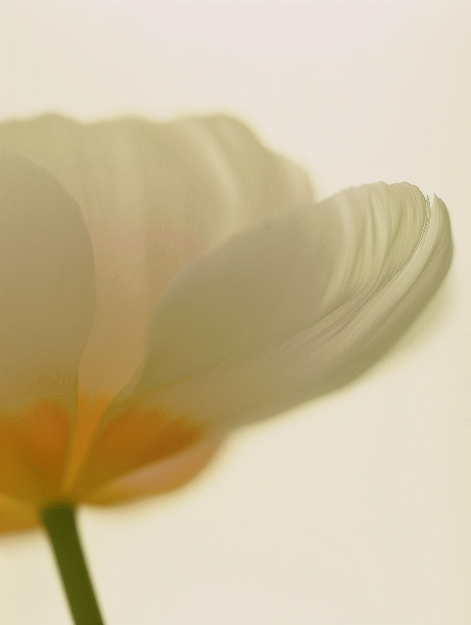 Soft-focus close-up of a pale yellow tulip petal with orange accents, creating a dreamy and delicate aesthetic.