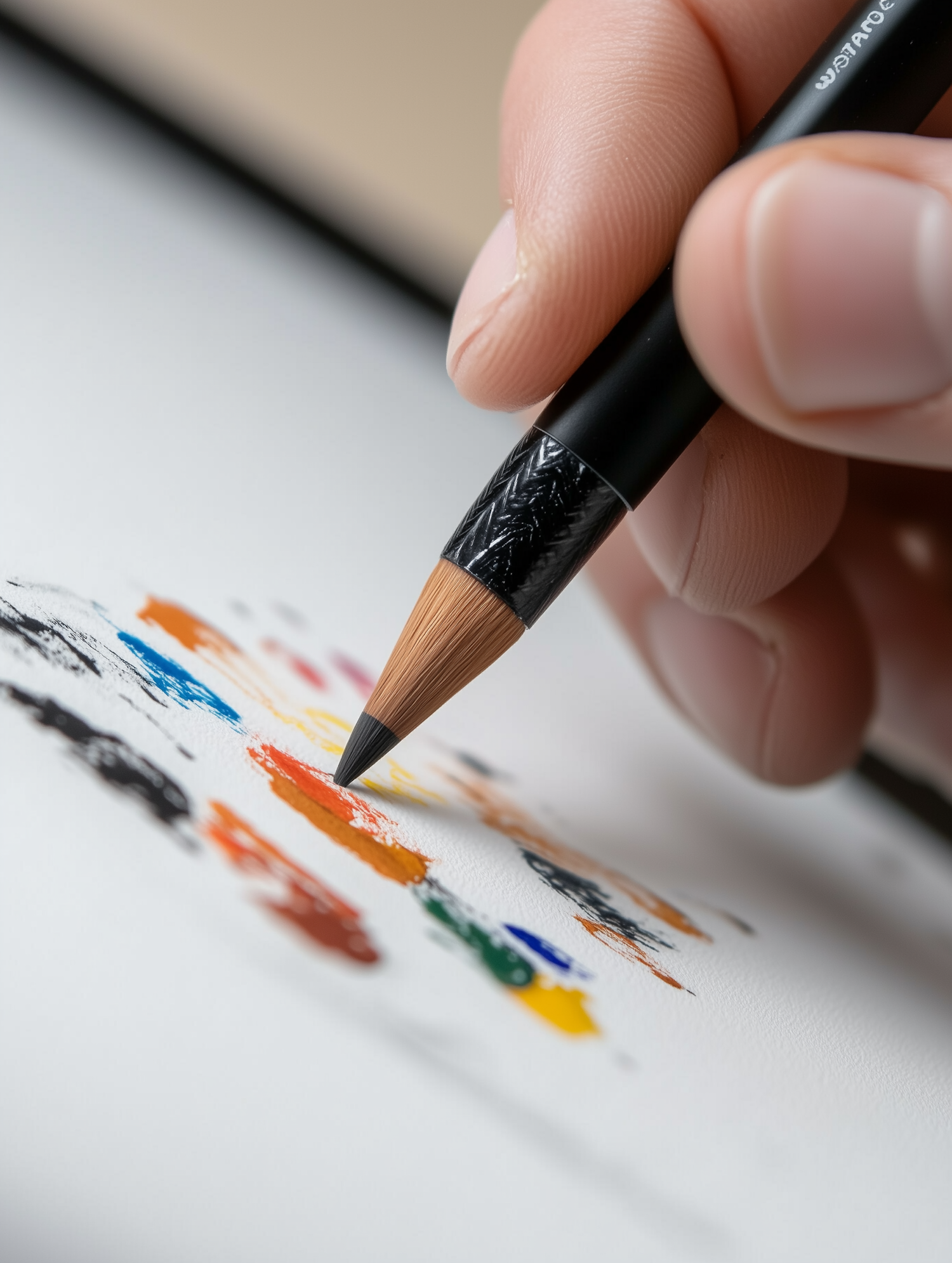 Close-up of a hand using a stylus on a digital tablet, creating colorful brush strokes. Perfect for digital art enthusiasts.