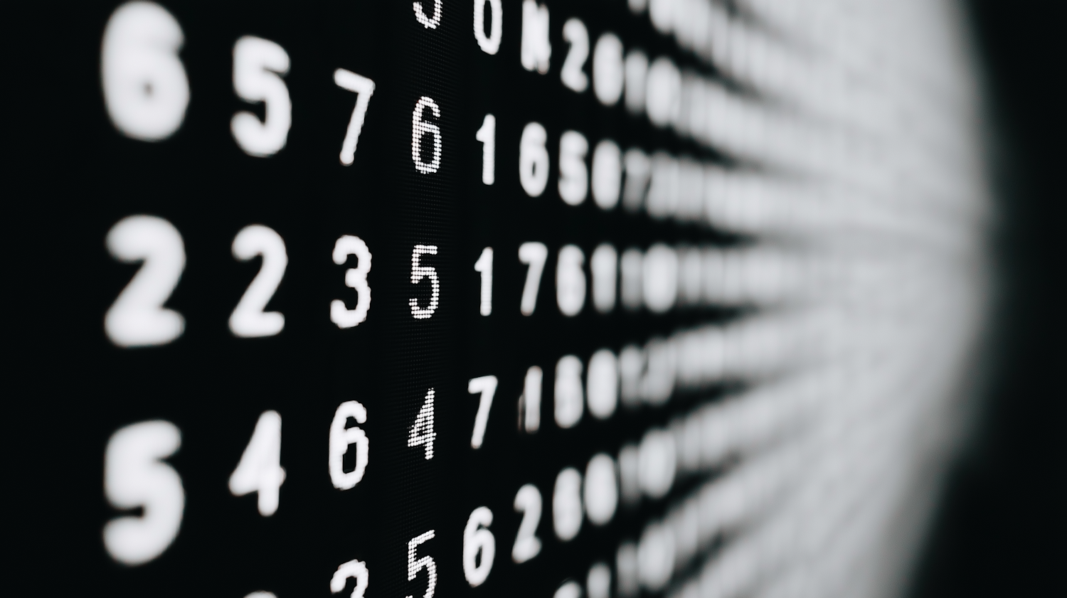 Close-up of a digital display with white numbers on a black background, creating a modern and tech-inspired aesthetic.