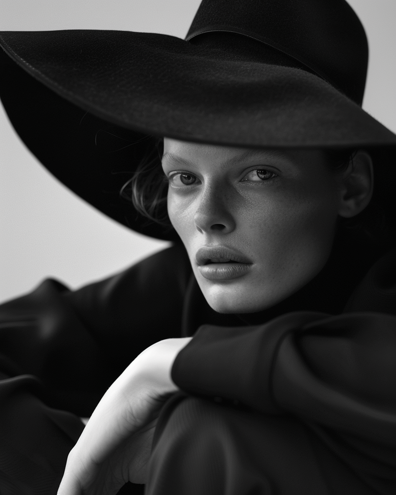 Dramatic Portrait with Wide-Brimmed Hat