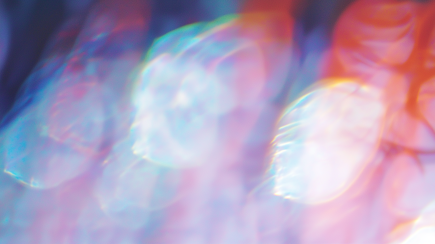 Dreamy abstract image with soft pink, blue, and purple hues blending seamlessly, enhanced by light reflections and bokeh patterns.