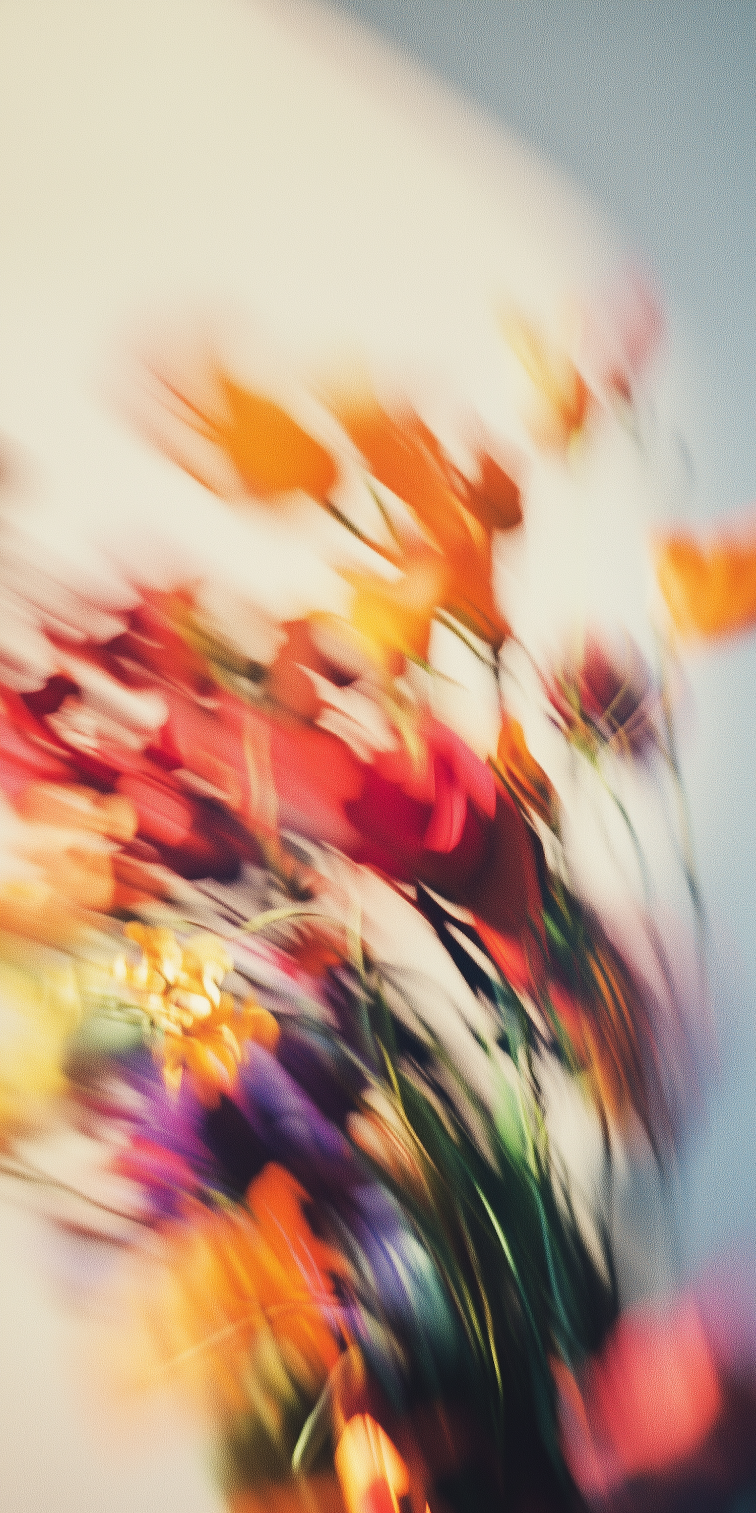 Abstract floral image with vibrant orange, red, and purple hues in motion, creating a dynamic and energetic visual effect.