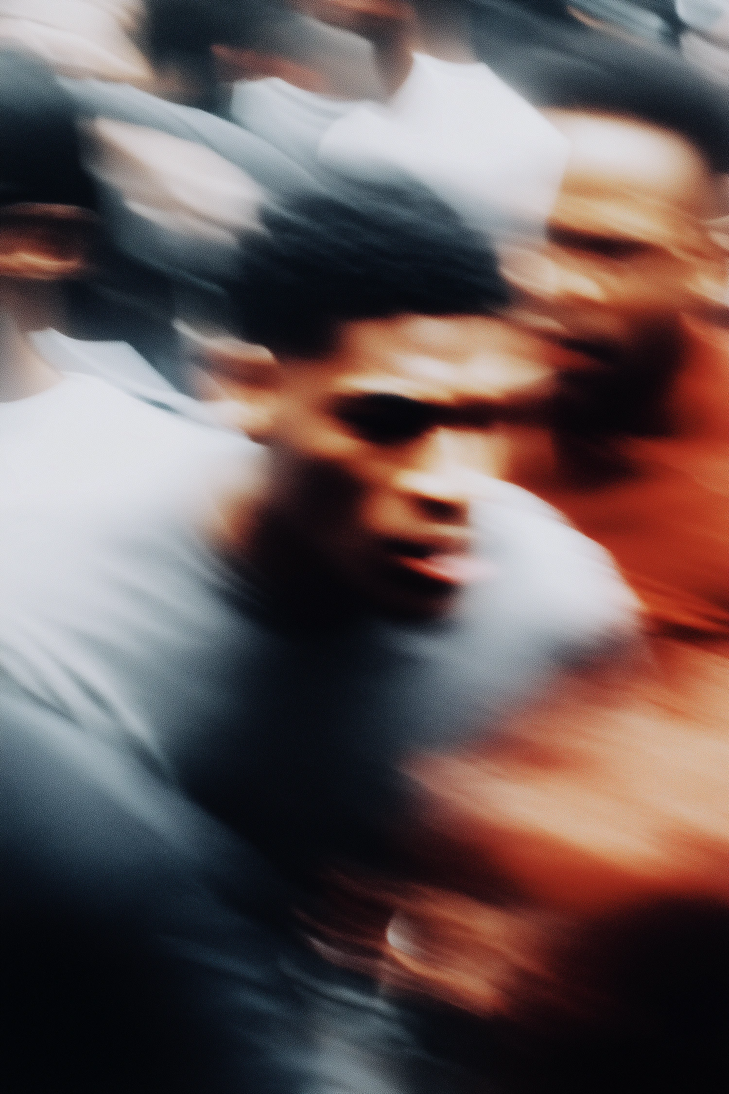 Abstract motion blur of a person in a dynamic scene, featuring warm and cool tones blending together artistically.