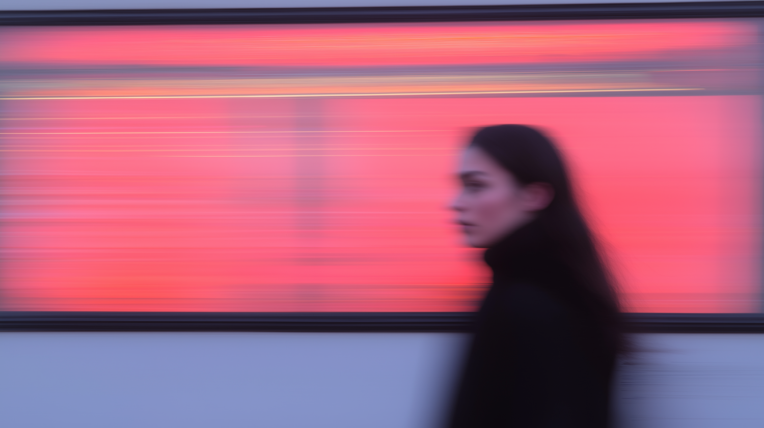 Blurred figure against a vibrant pink and orange background, creating a dynamic and modern abstract composition.