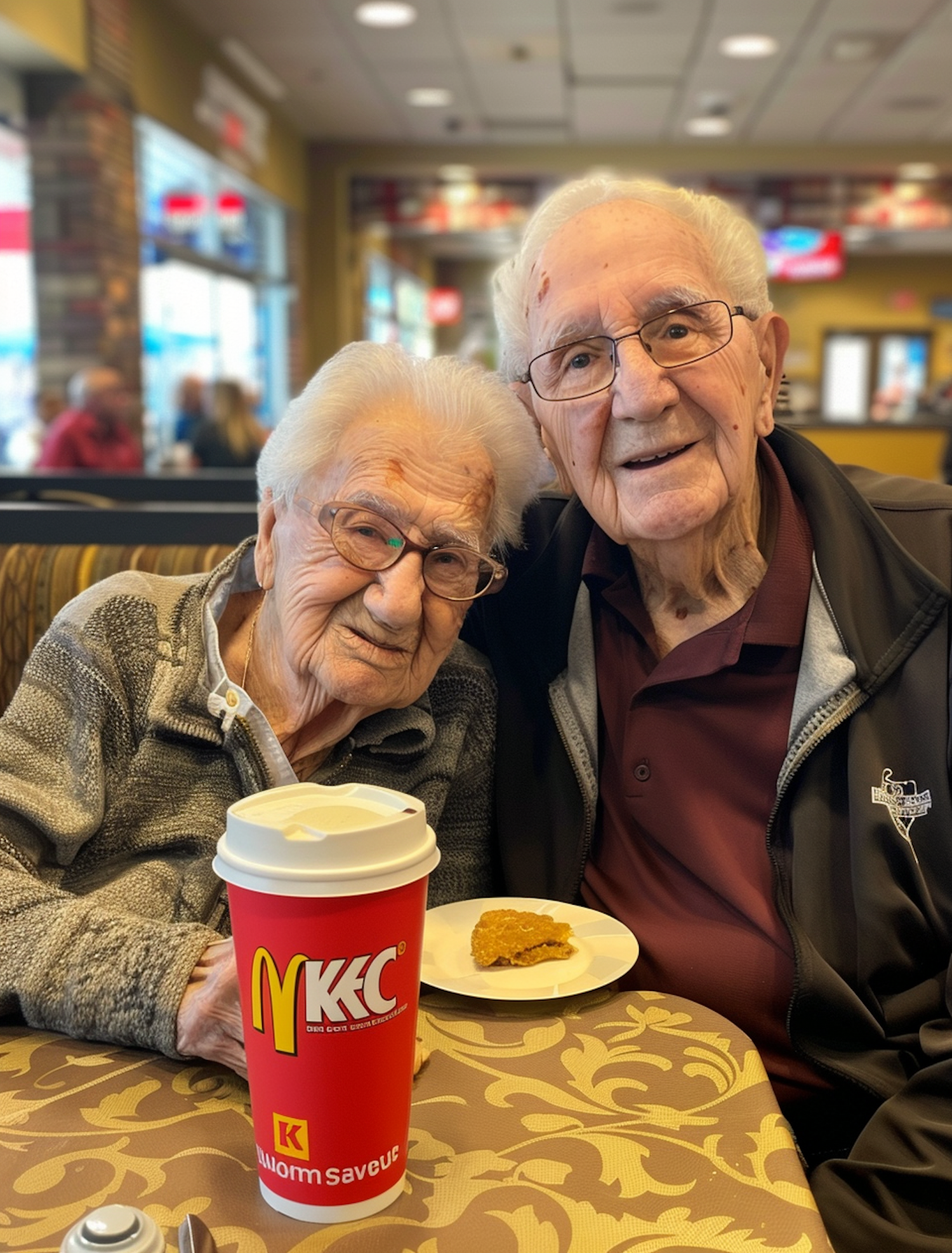 Elderly Couple Enjoying Time Together at Fast Food Restaurant