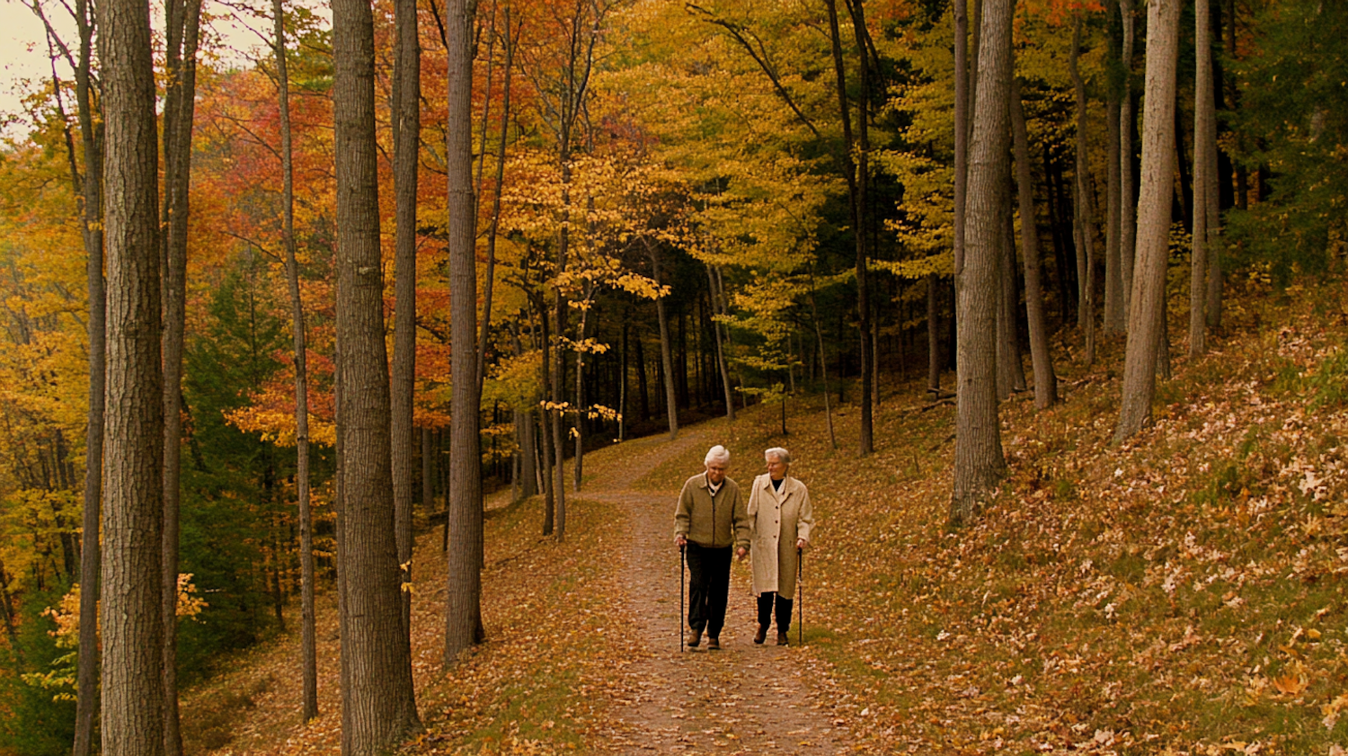 Elderly Stroll in Autumn Forest