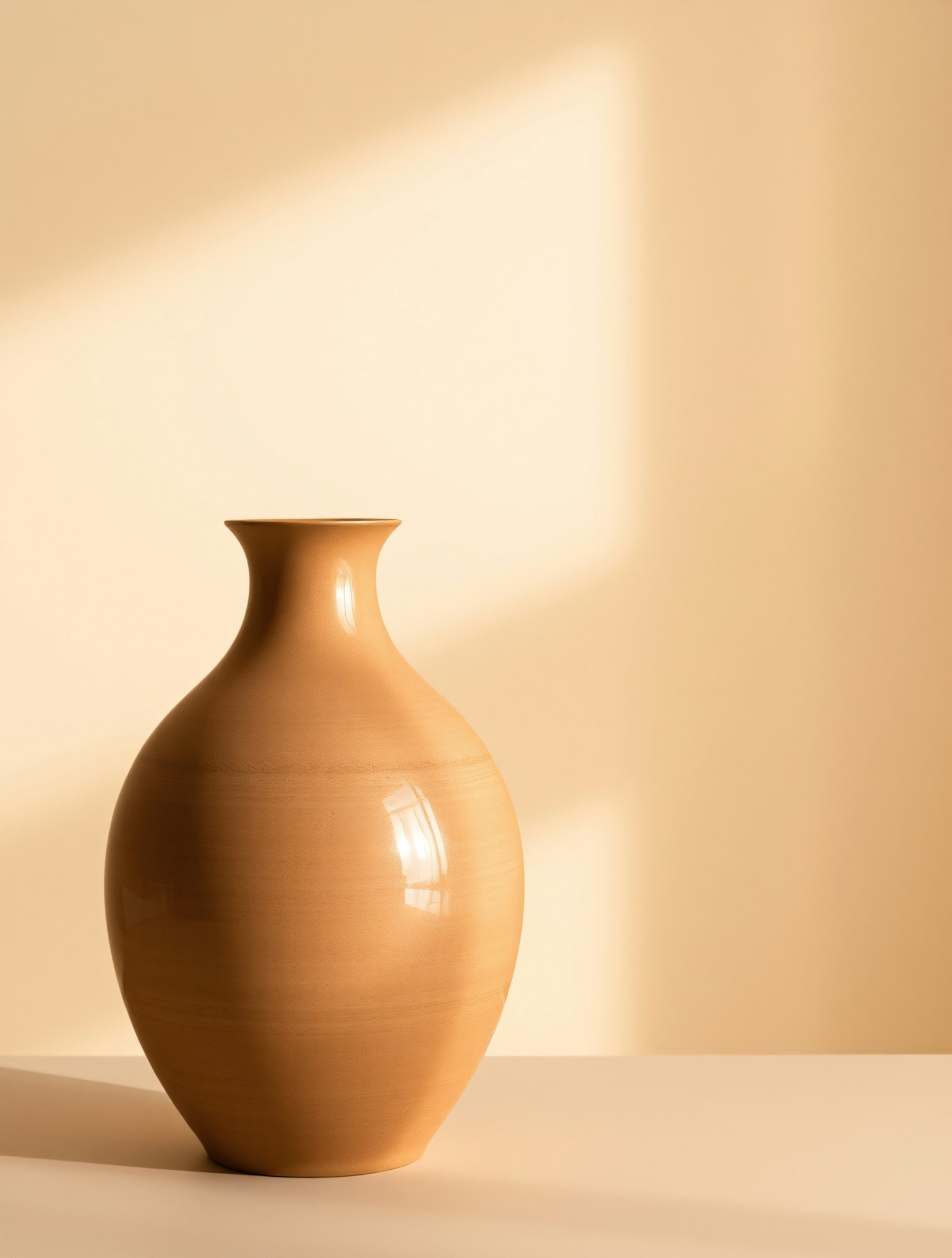 Elegant ceramic vase with a glossy finish against a soft beige background, creating a minimalist and serene atmosphere.