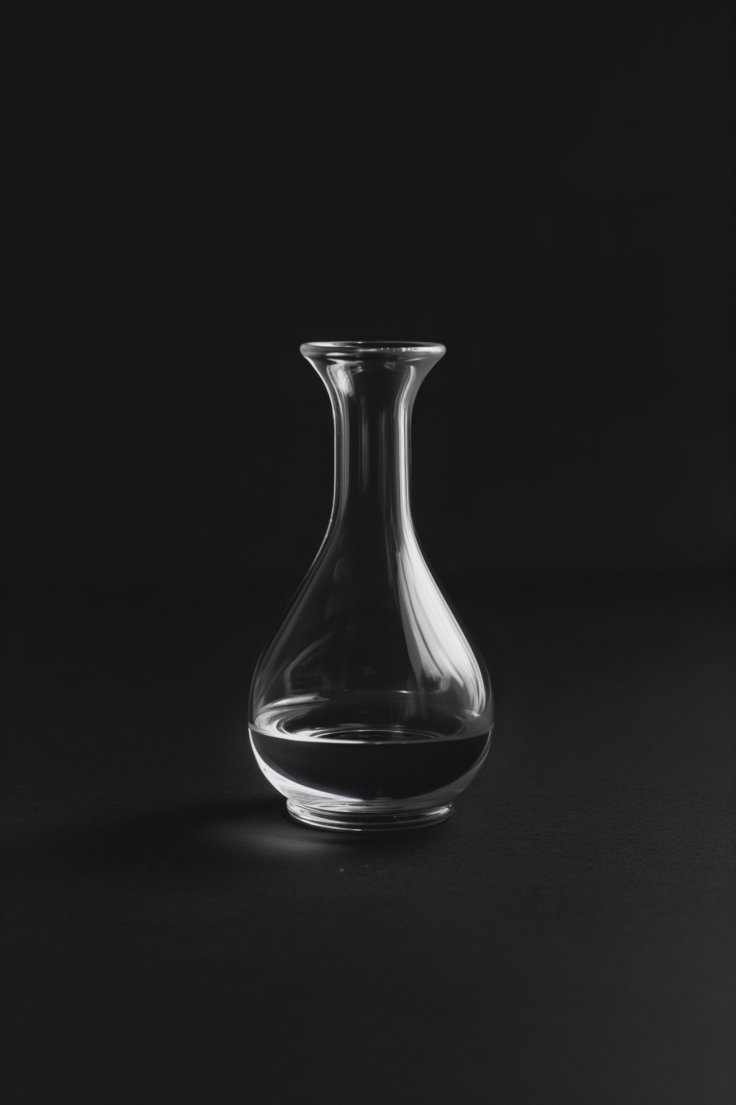 Elegant glass carafe with water against a dark background, highlighting its sleek design and minimalist aesthetic.
