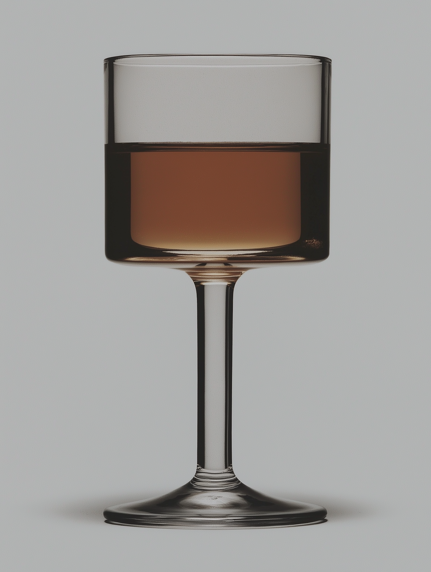 Elegant wine glass with amber liquid, minimalist design, and sleek lines. Perfect for showcasing whiskey or brandy.
