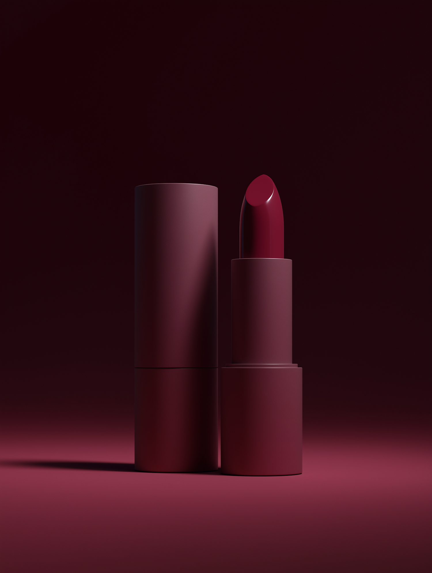 A luxurious dark red lipstick displayed against a matching burgundy background, showcasing its sleek design and rich color.