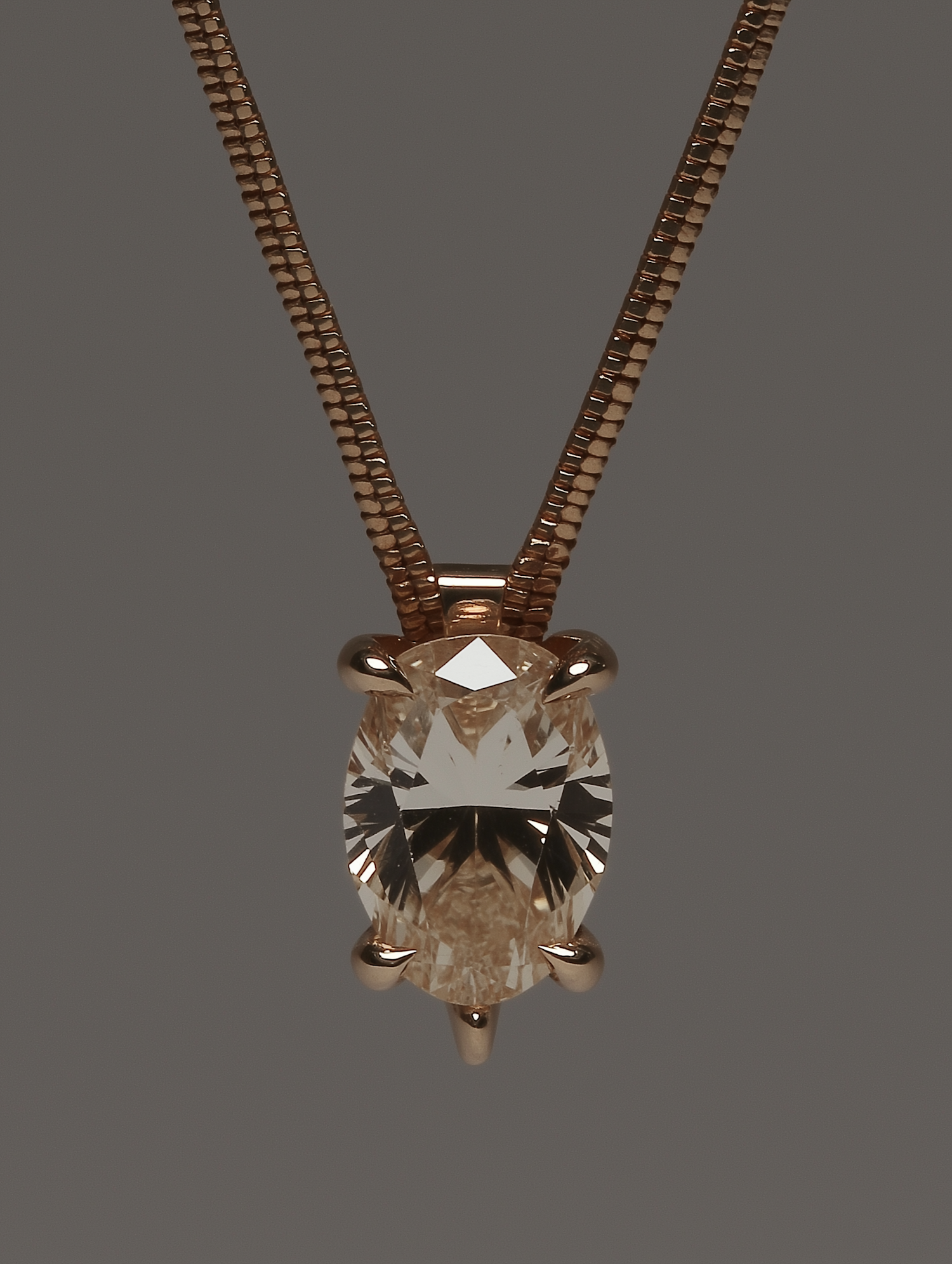 Elegant rose gold pendant necklace with an oval champagne gemstone on a sleek box chain, perfect for a sophisticated look.