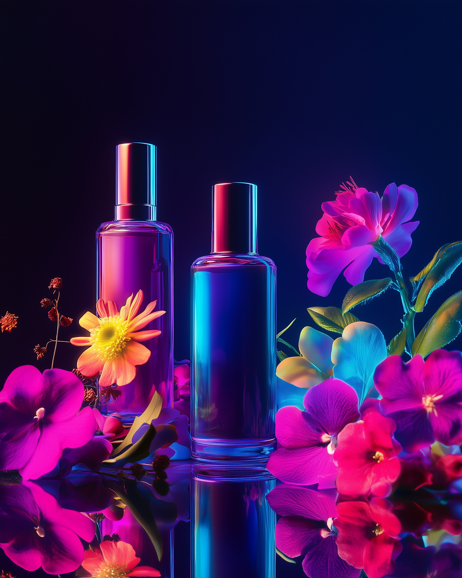 Elegant Perfume Bottles with Neon Flowers
