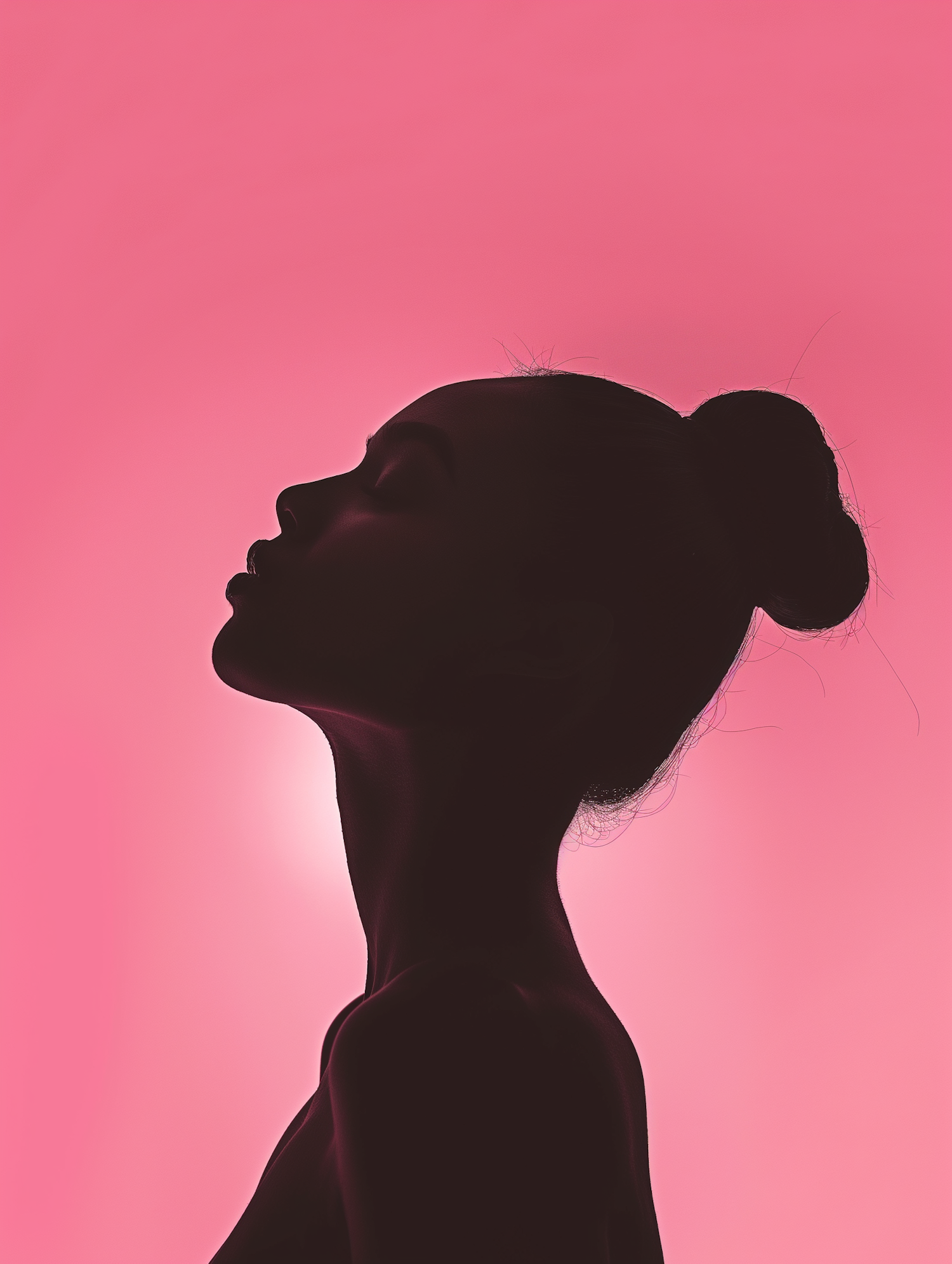 Silhouette of a woman with a bun against a vibrant pink background, highlighting elegance and simplicity.