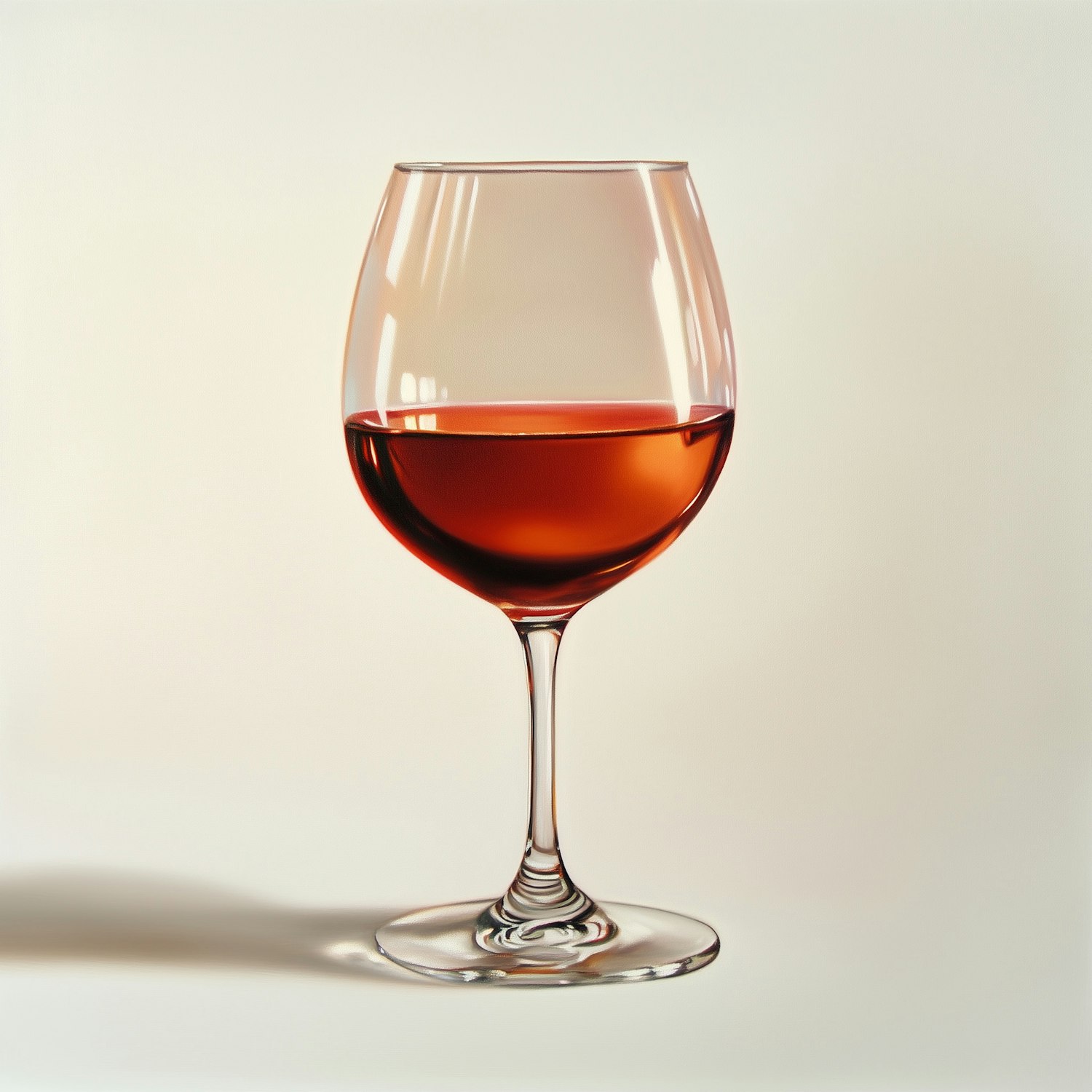 A polished wine glass filled with deep red wine on a neutral background, with soft light reflections and a clean, minimalistic vibe.