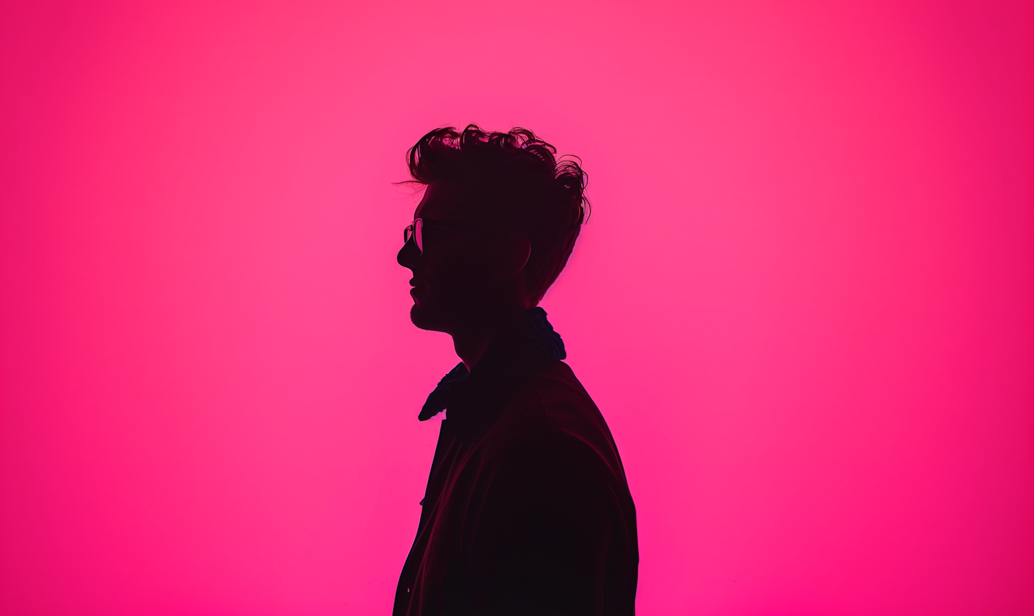 Silhouette of a person with glasses against a vibrant pink background, highlighting the profile and contours.