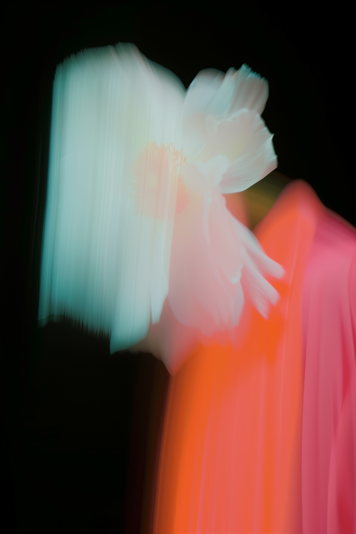 Abstract art with glowing white, cyan, orange, and pink hues blending on a black background, creating a dreamy, fluid aesthetic.