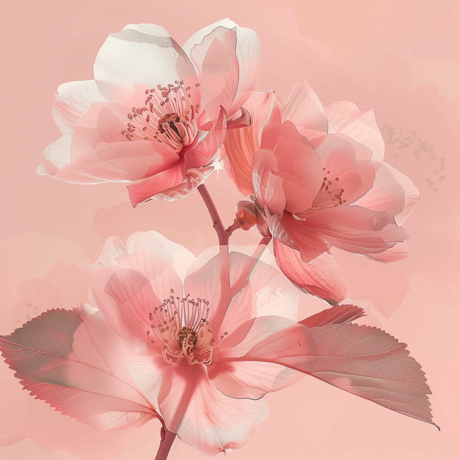 Elegant cherry blossoms in soft pink hues, showcasing delicate petals and intricate details against a pastel background.