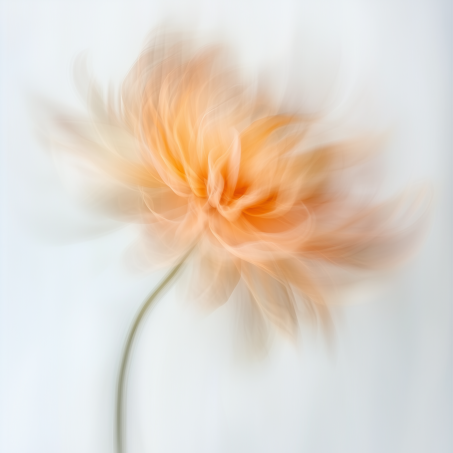 Abstract image of a peach-colored flower with swirling petals on a light gray background, creating a dreamy, ethereal effect.