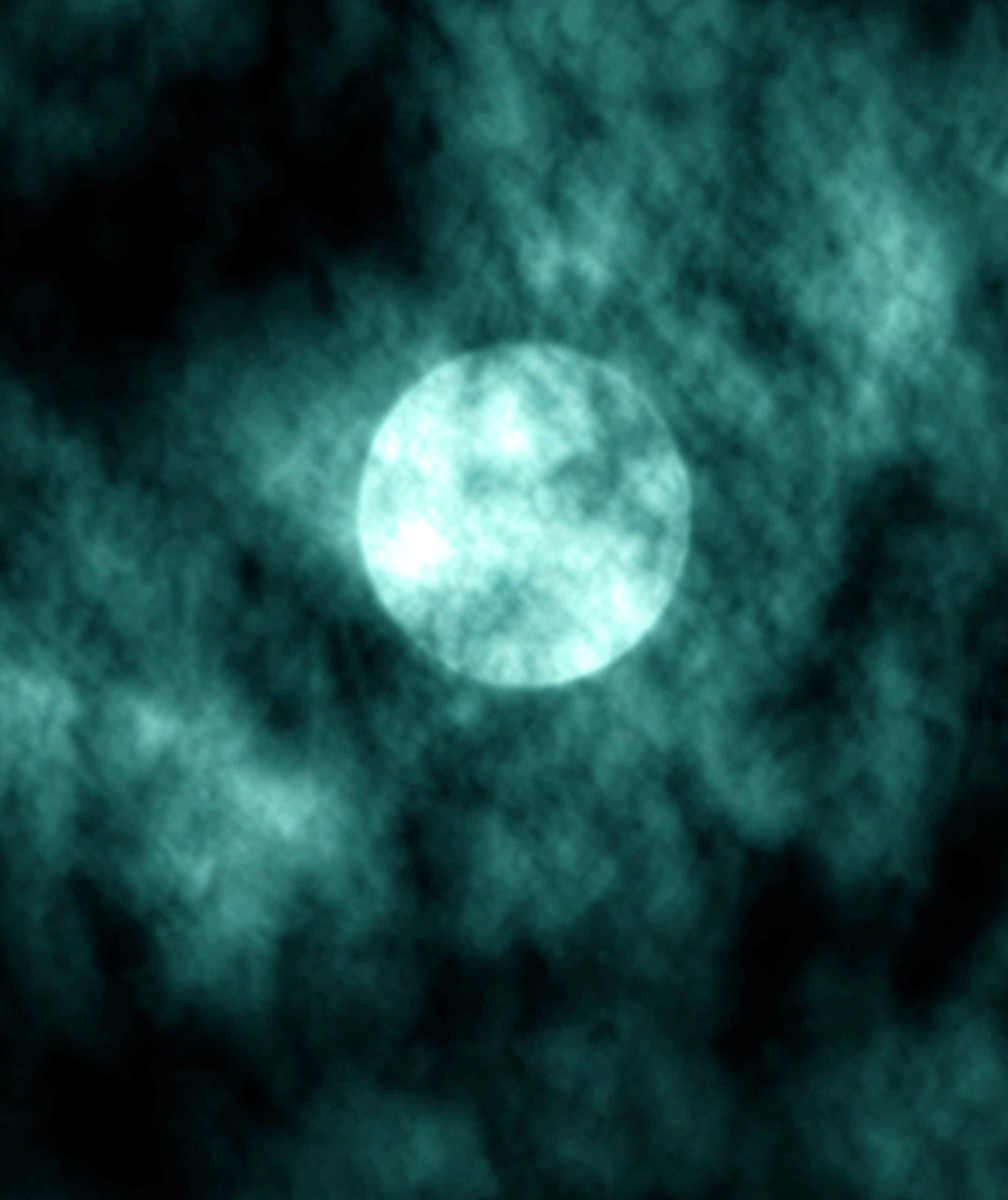 A glowing circular object amidst a textured teal and black background, creating a mysterious and ethereal digital artwork.