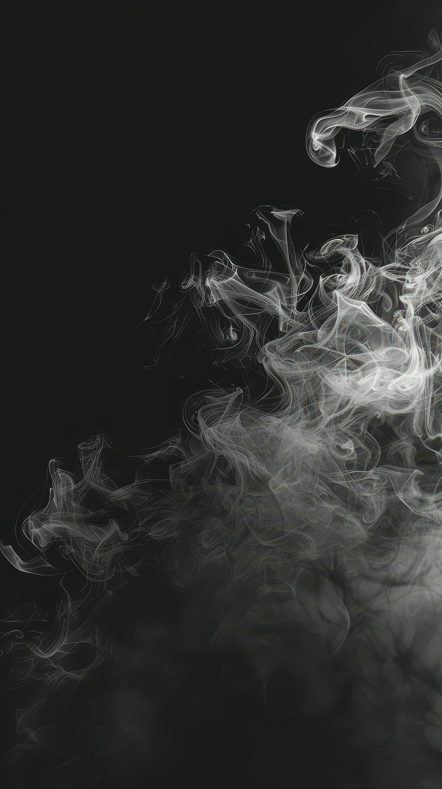 Ethereal white smoke swirls against a dark background, creating intricate patterns and a mysterious atmosphere.