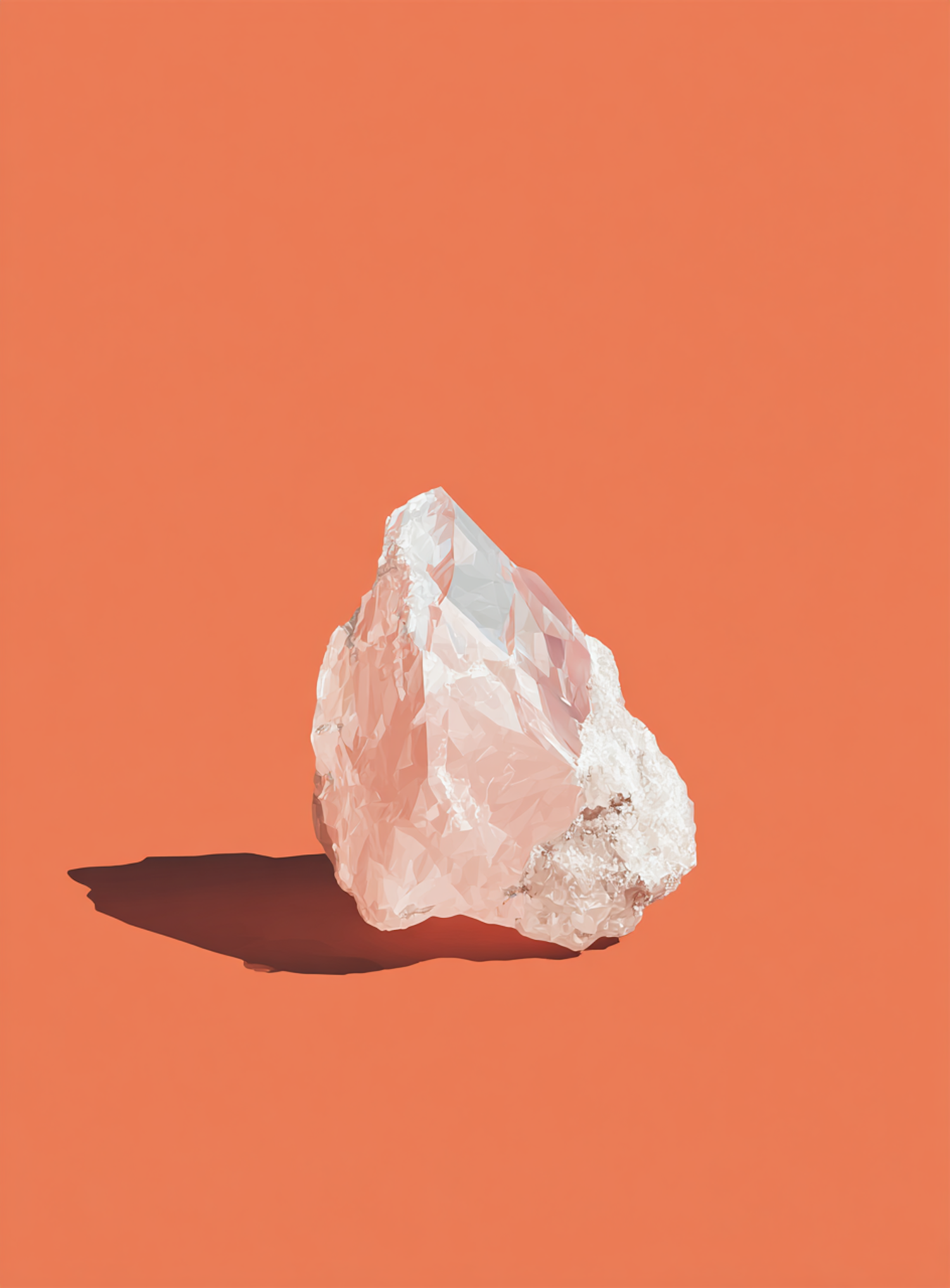 A clear crystal with intricate facets on a vibrant orange background, creating a striking minimalist composition.