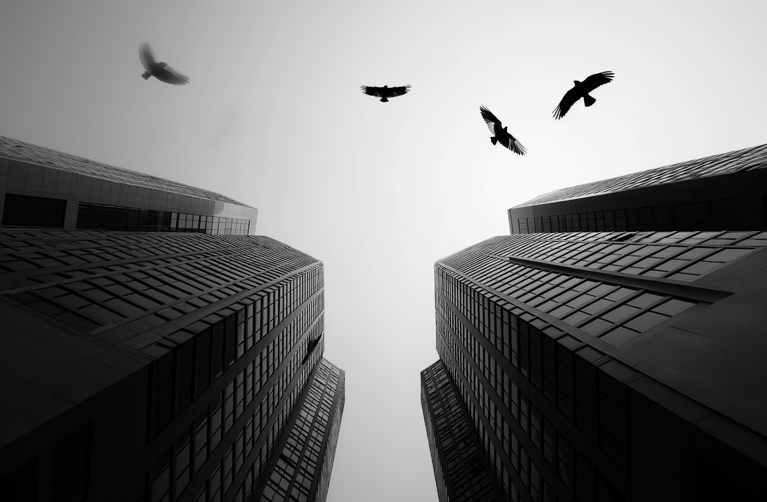 Skyward Crows Among Urban Monoliths