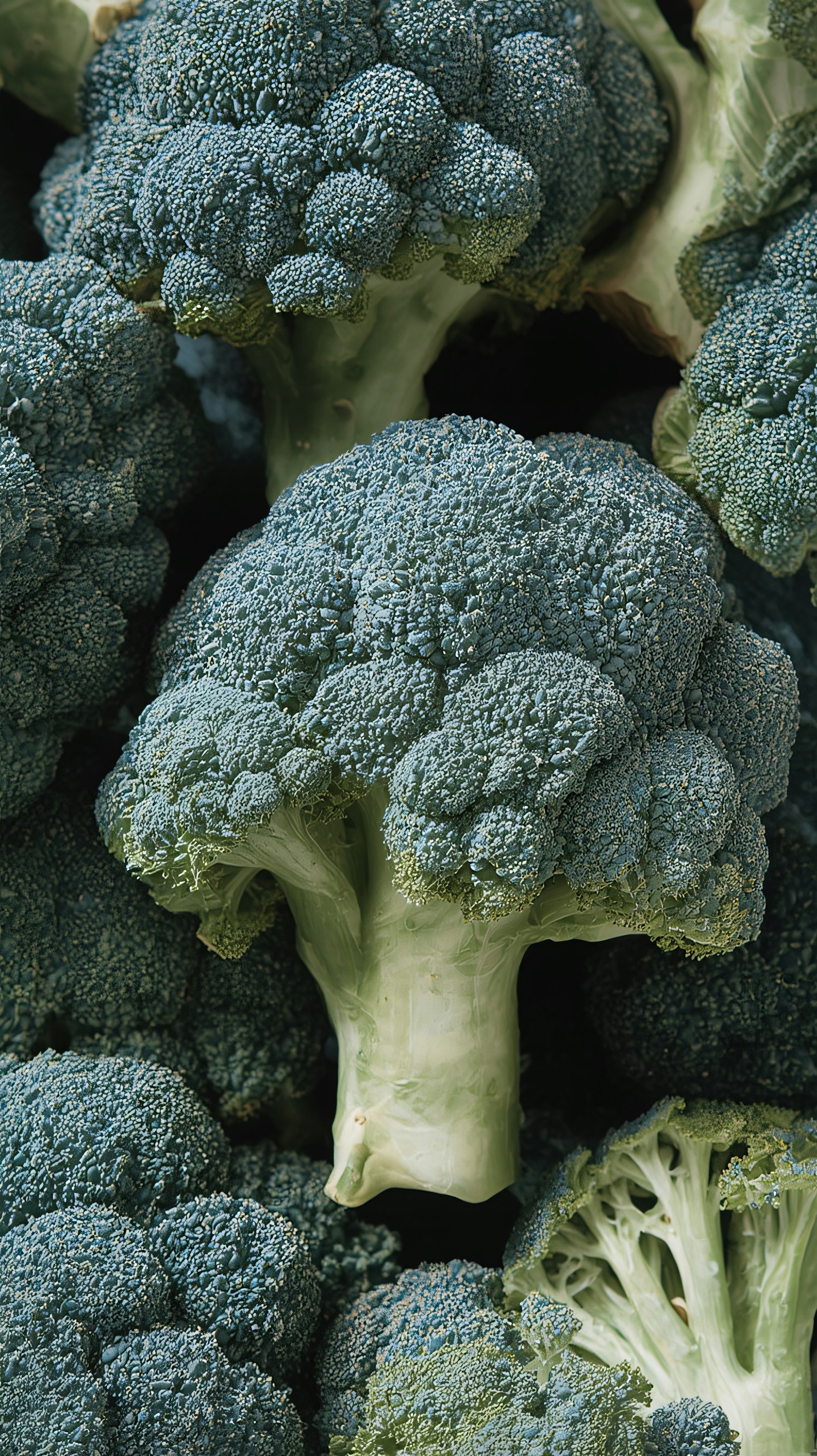 Close-up of fresh broccoli heads with vibrant green florets and detailed texture, perfect for healthy eating or cooking inspiration.