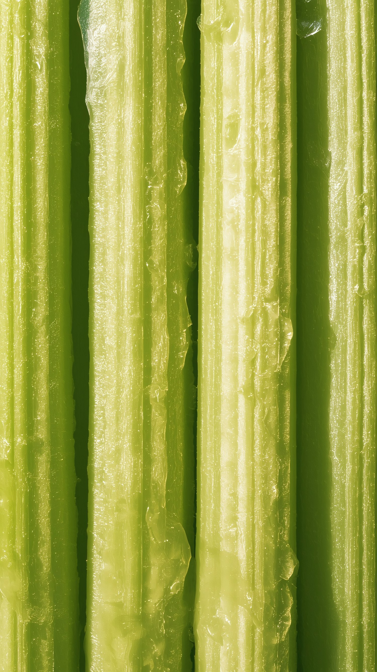 Close-up of fresh green celery stalks, showcasing their crisp texture and vibrant color in detailed focus.