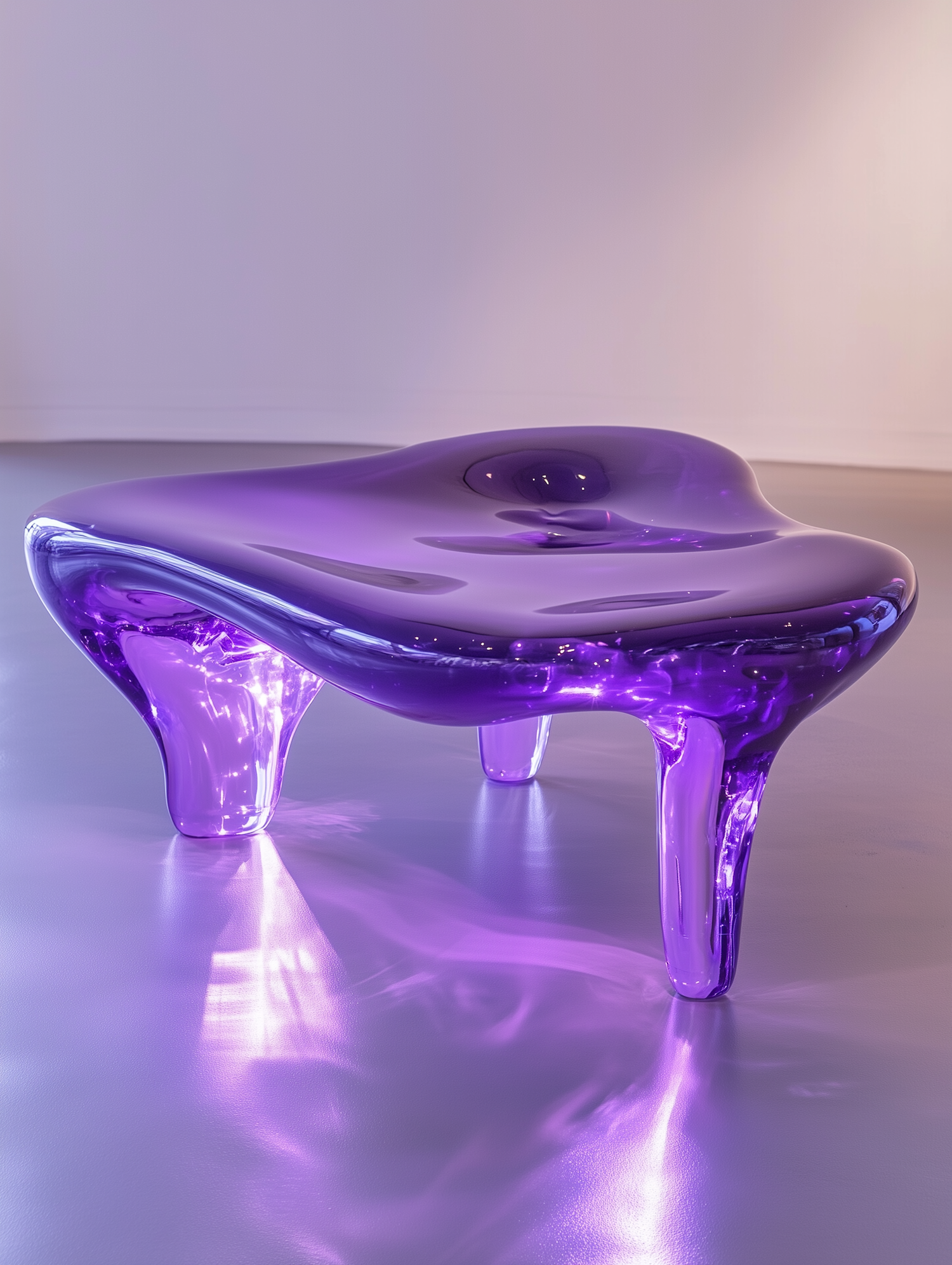Modern purple coffee table with a fluid, glass-like design and glowing highlights, perfect for contemporary interiors.