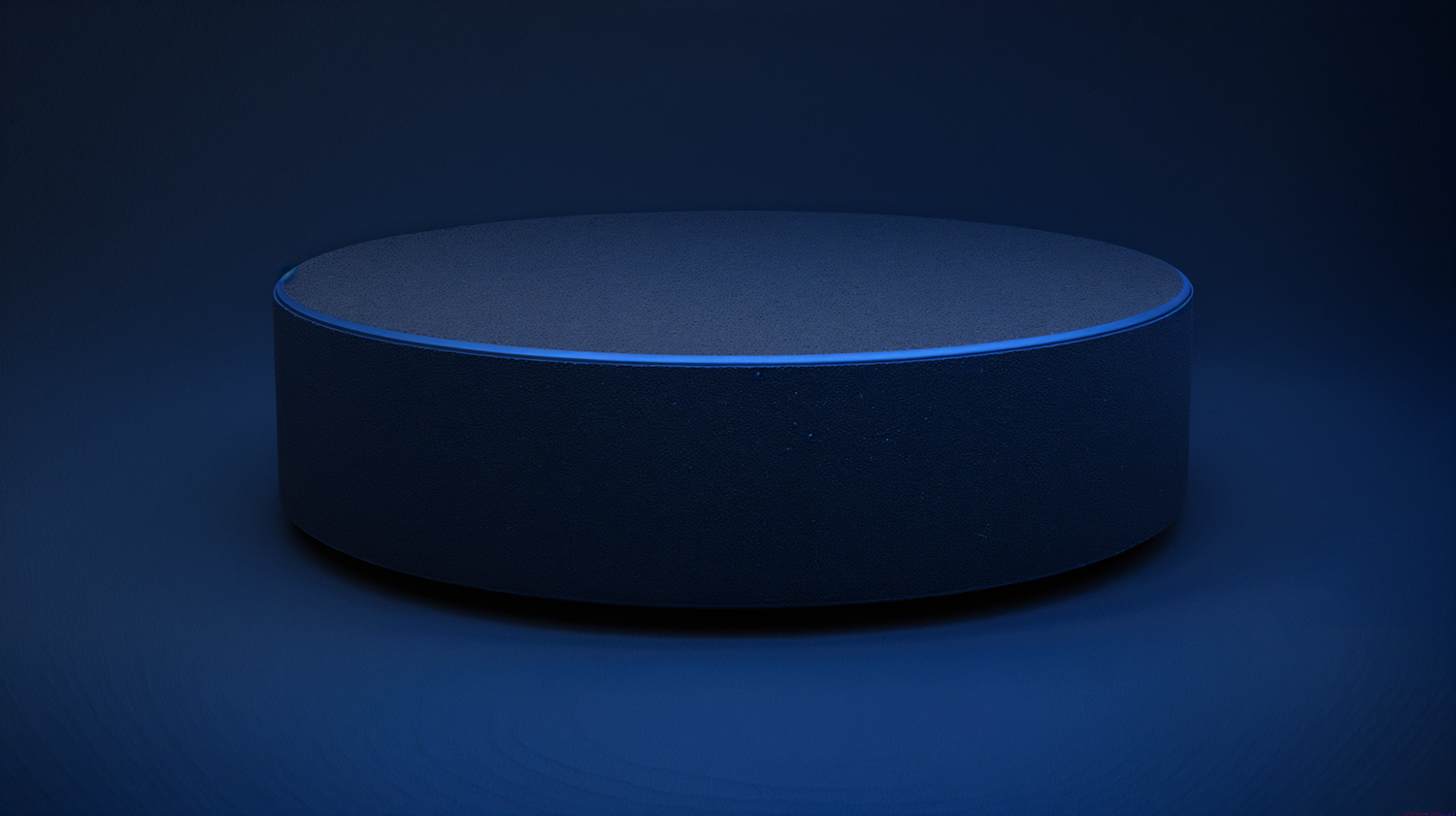 A sleek circular platform illuminated by blue light, set against a gradient blue background, creating a modern and minimalist aesthetic.