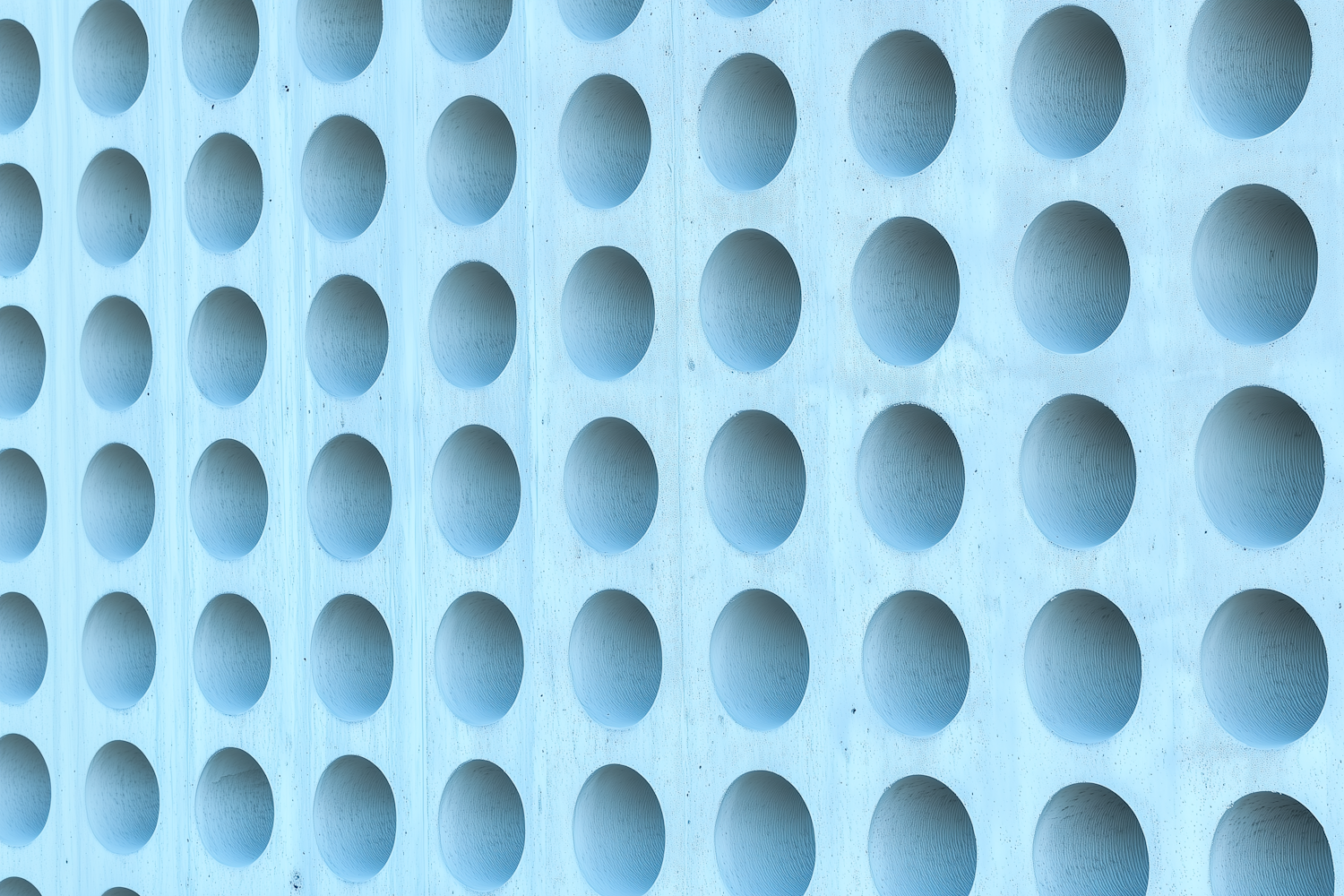 Light blue surface with circular indentations in a grid pattern, creating a modern, textured design with depth and symmetry.