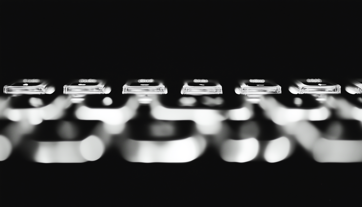 Close-up of illuminated transparent keyboard keycaps with a sleek, modern aesthetic and a dramatic black background.