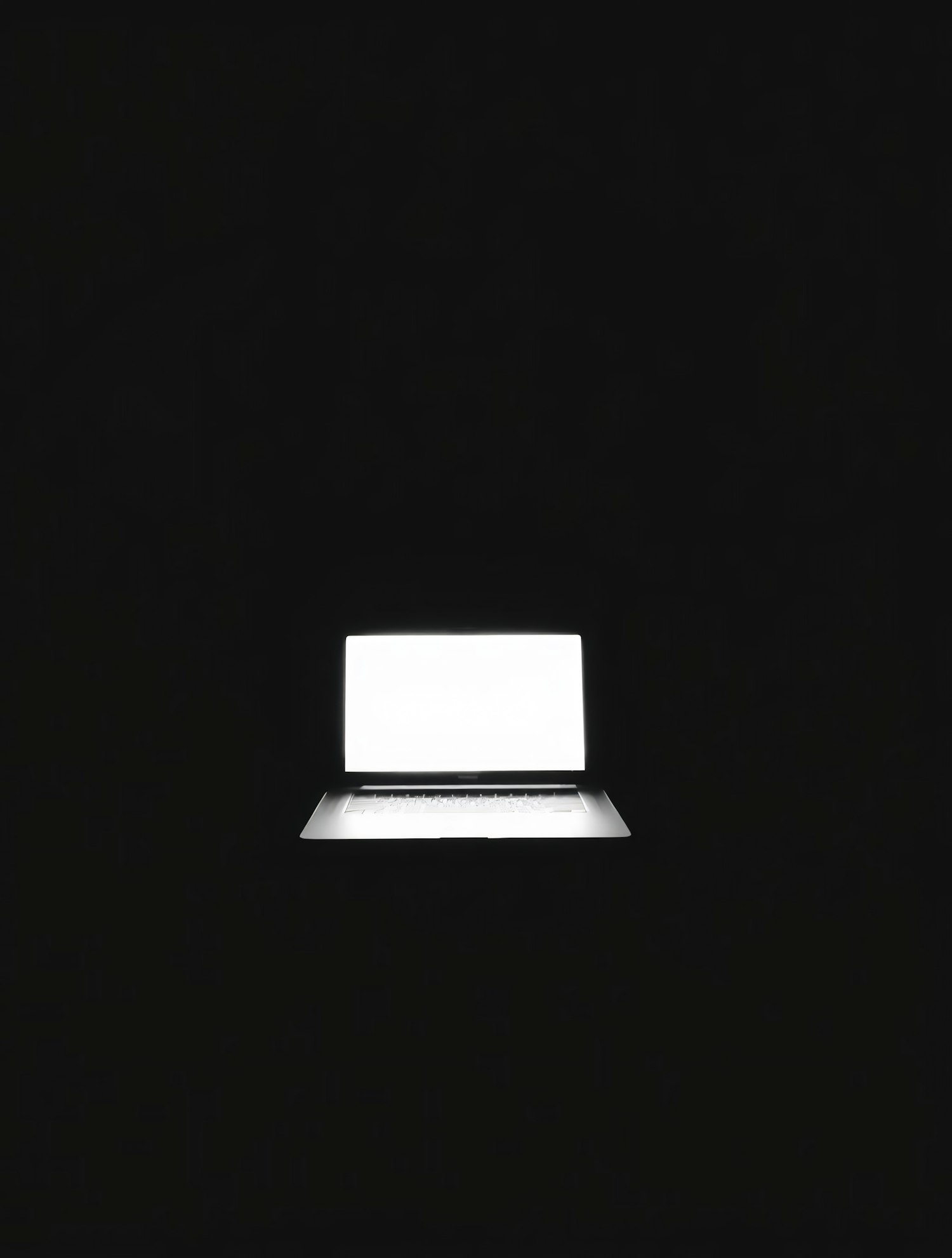 A glowing laptop screen in a dark setting, highlighting the device's sleek design and creating a minimalist, focused atmosphere.
