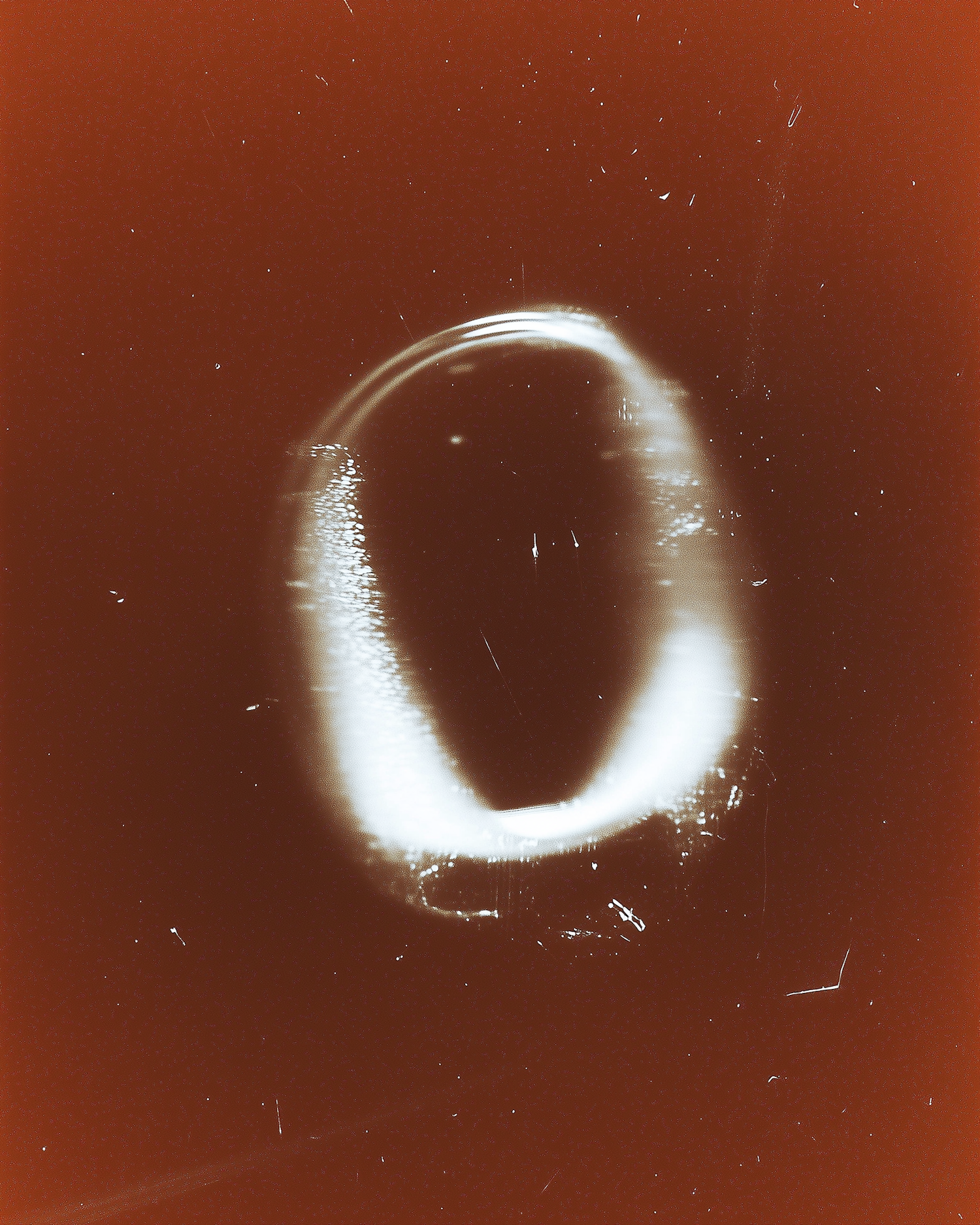 Abstract glowing oval shape on a reddish-brown background with a vintage, textured aesthetic. Minimalistic and mysterious design.