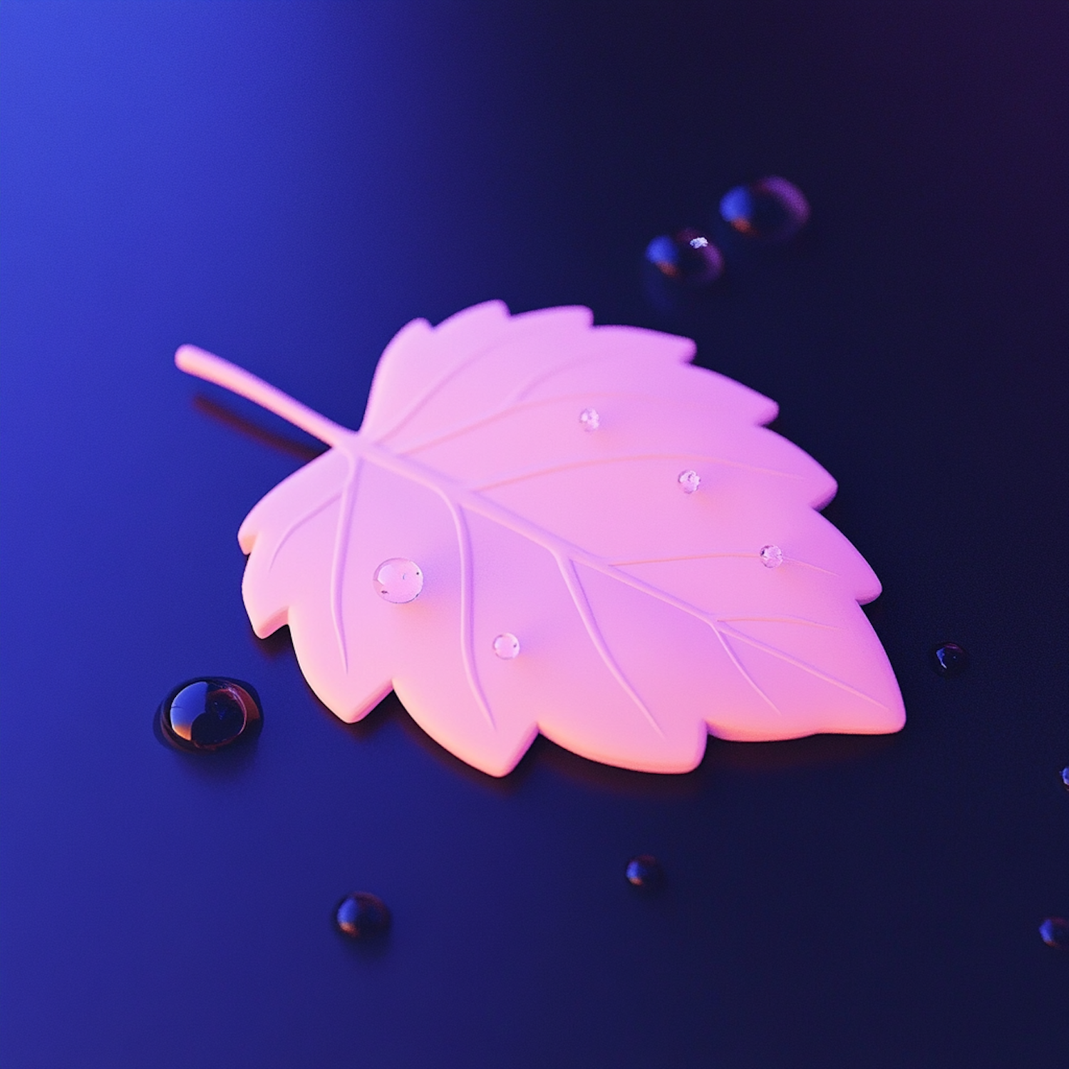 Glowing Pink Leaf Against Blue Background