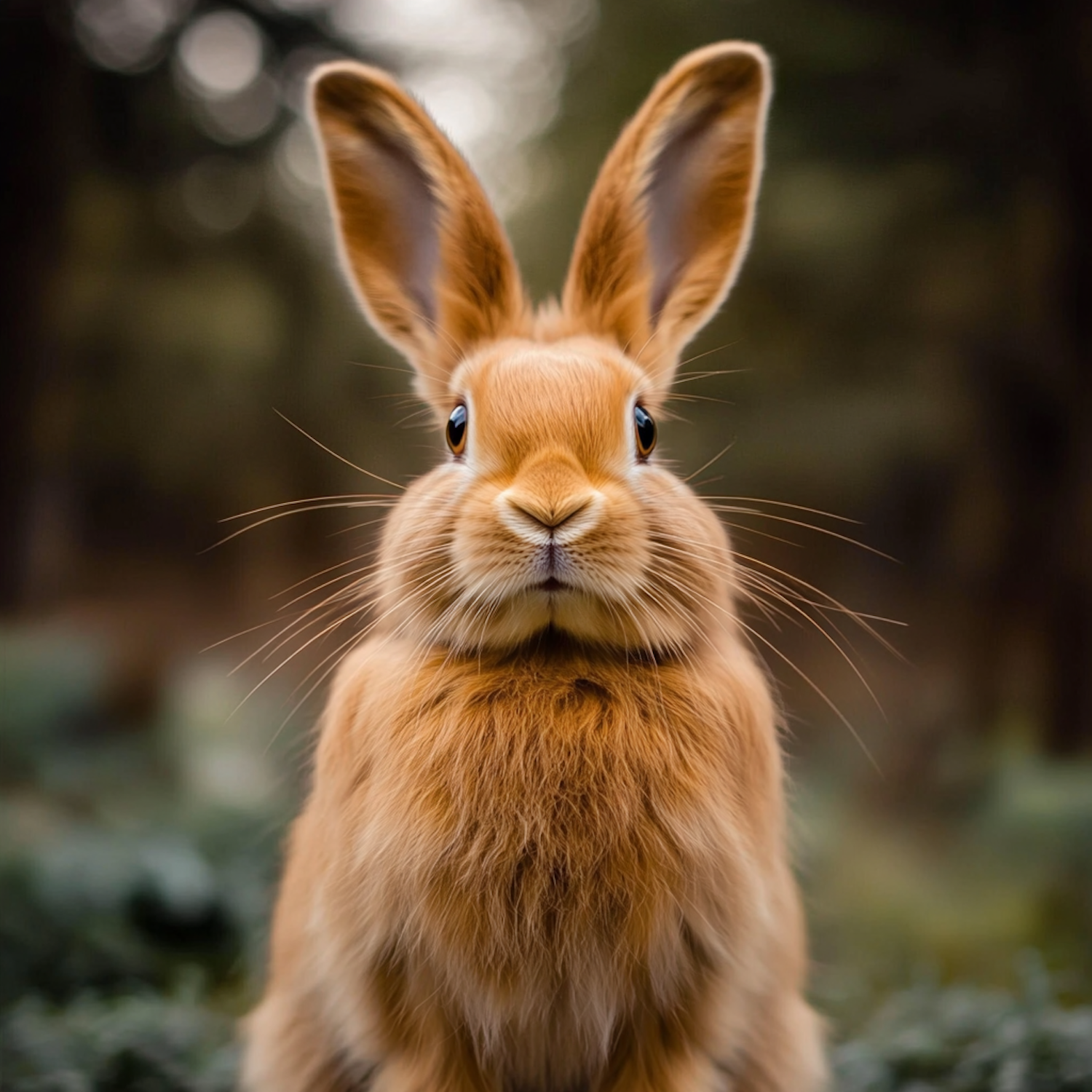 Adorable fluffy rabbit with golden-brown fur and expressive eyes, sitting upright in a natural setting. Perfect for animal lovers.