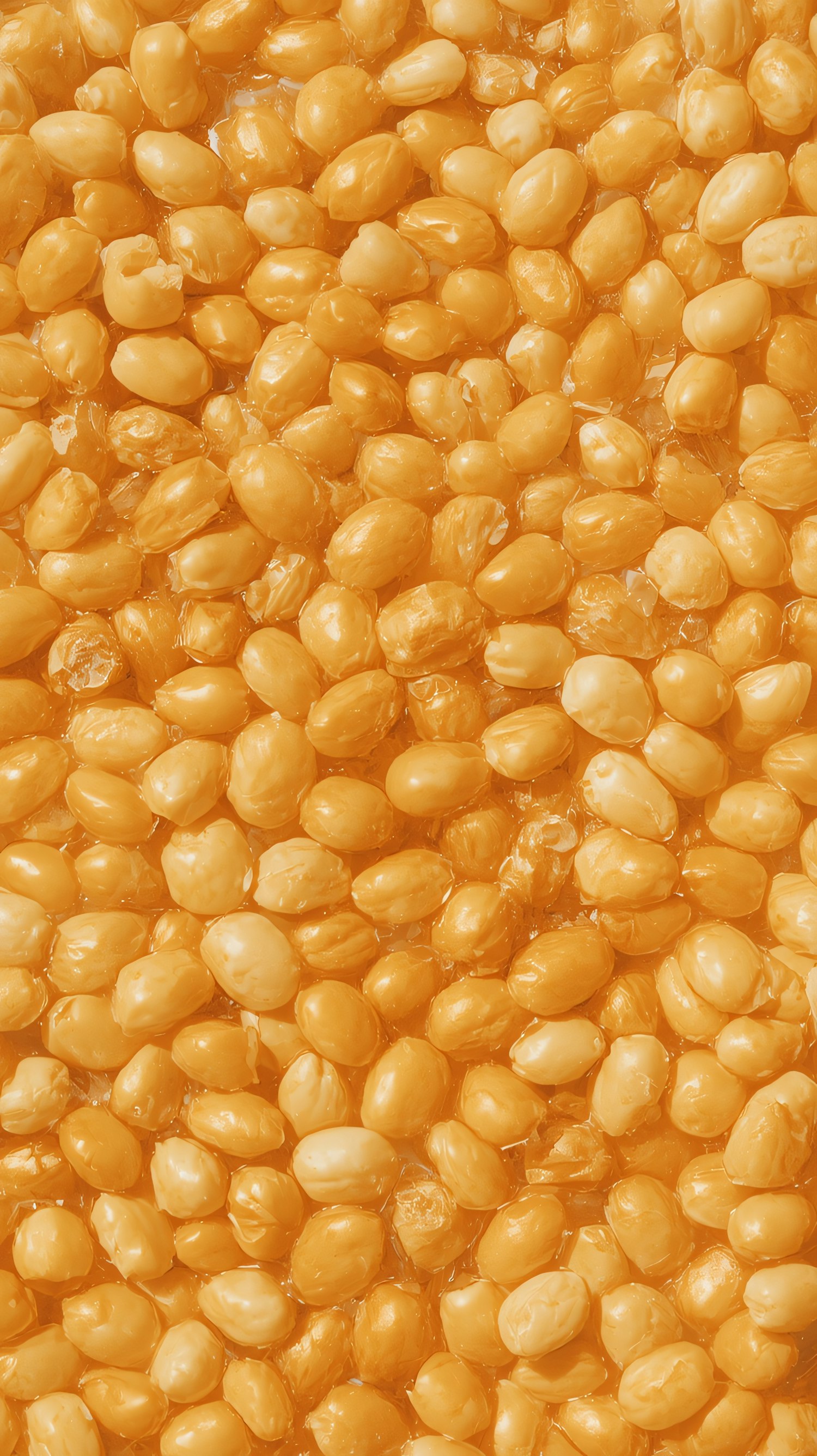 Close-up of glossy golden-yellow kernels, showcasing their smooth texture and vibrant color in a tightly packed arrangement.
