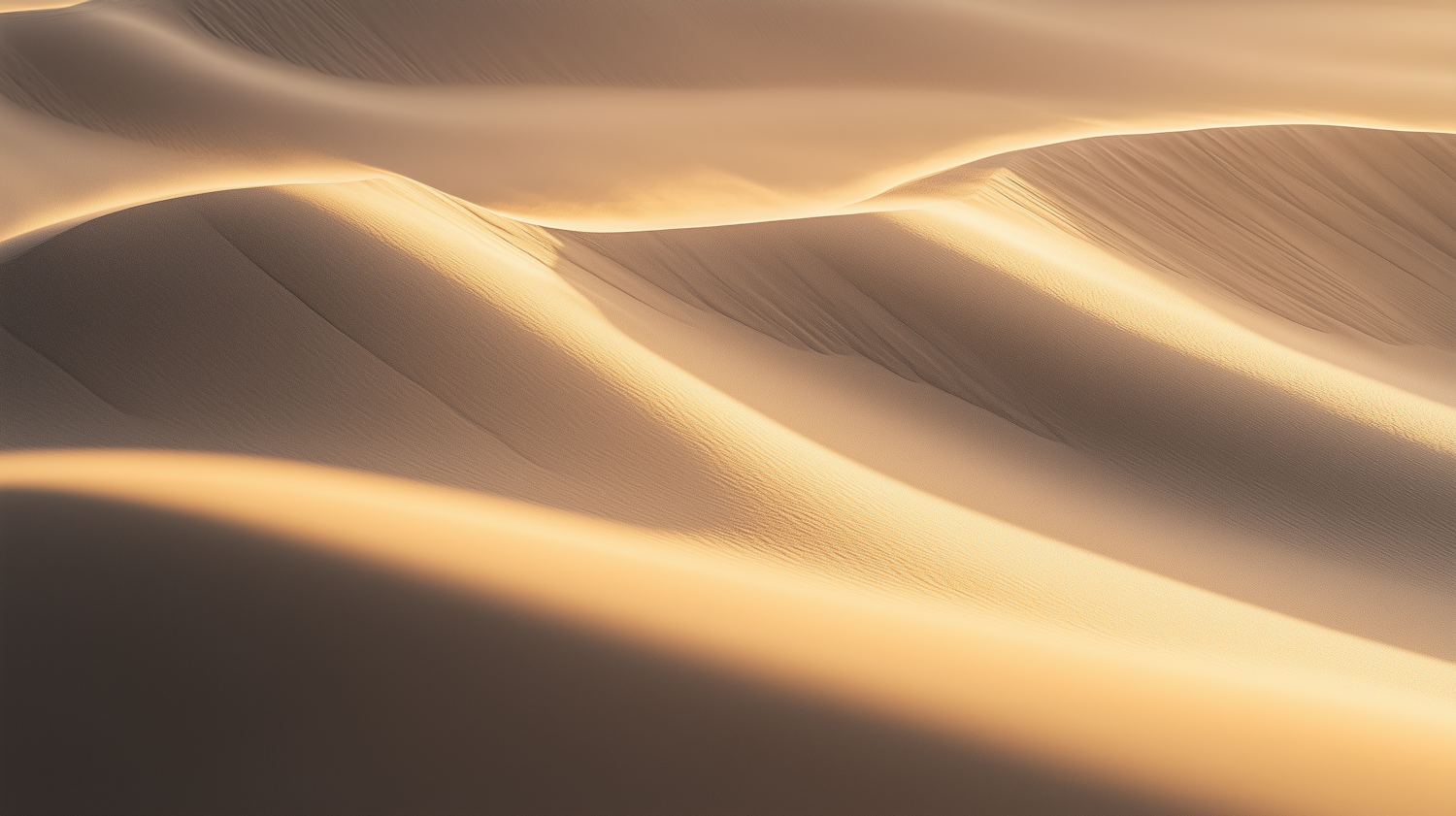 Golden sand dunes illuminated by soft sunlight, showcasing smooth curves and intricate textures in a serene and untouched desert scene.