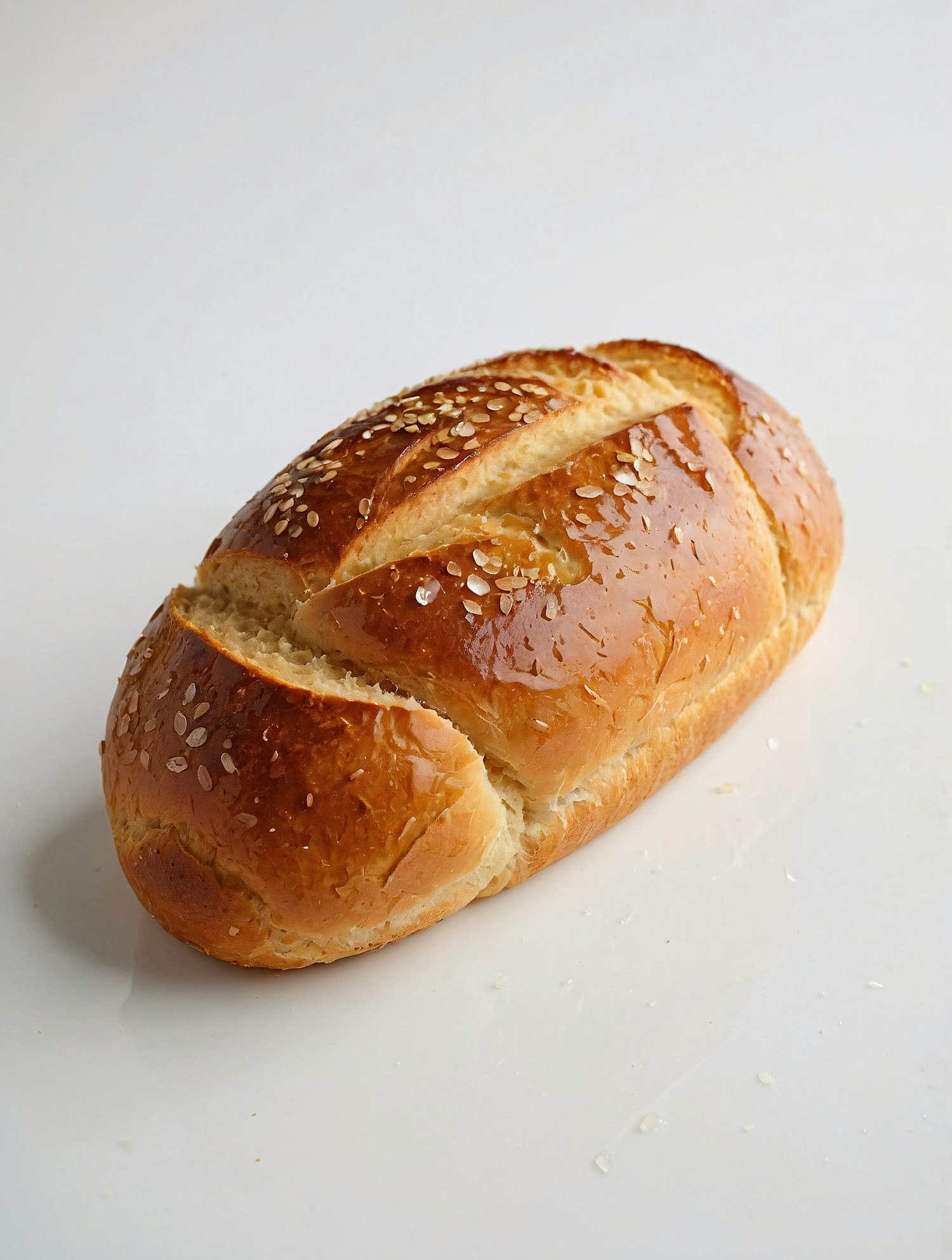 Golden-brown loaf of bread with sesame seeds on a glossy crust, perfect for sandwiches or as a side. Simple and appetizing!