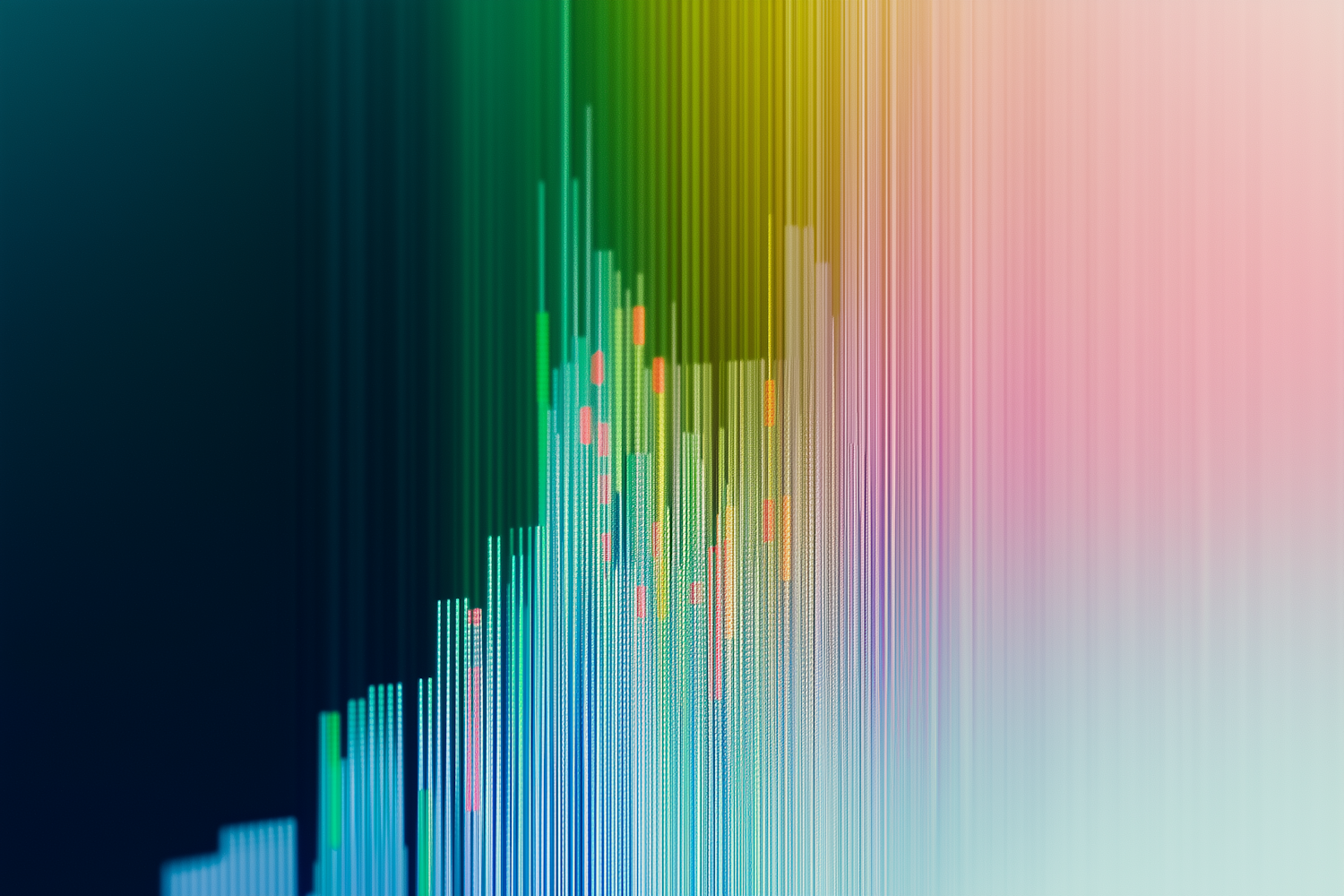Abstract digital art with colorful vertical lines and gradient hues, resembling a futuristic graph or data visualization.