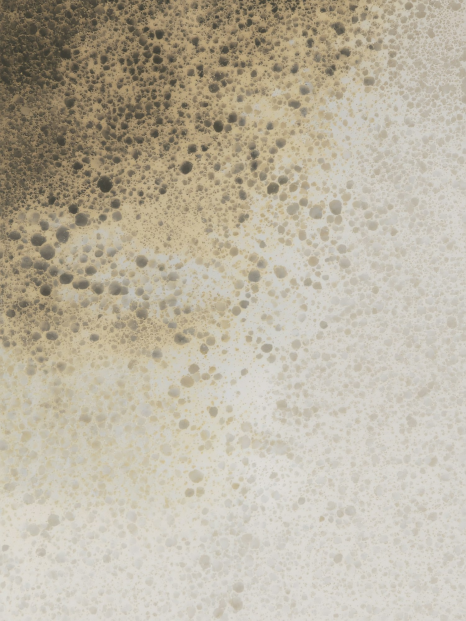 Abstract gradient pattern with speckled textures transitioning from dark to light tones, featuring beige, brown, and white hues.