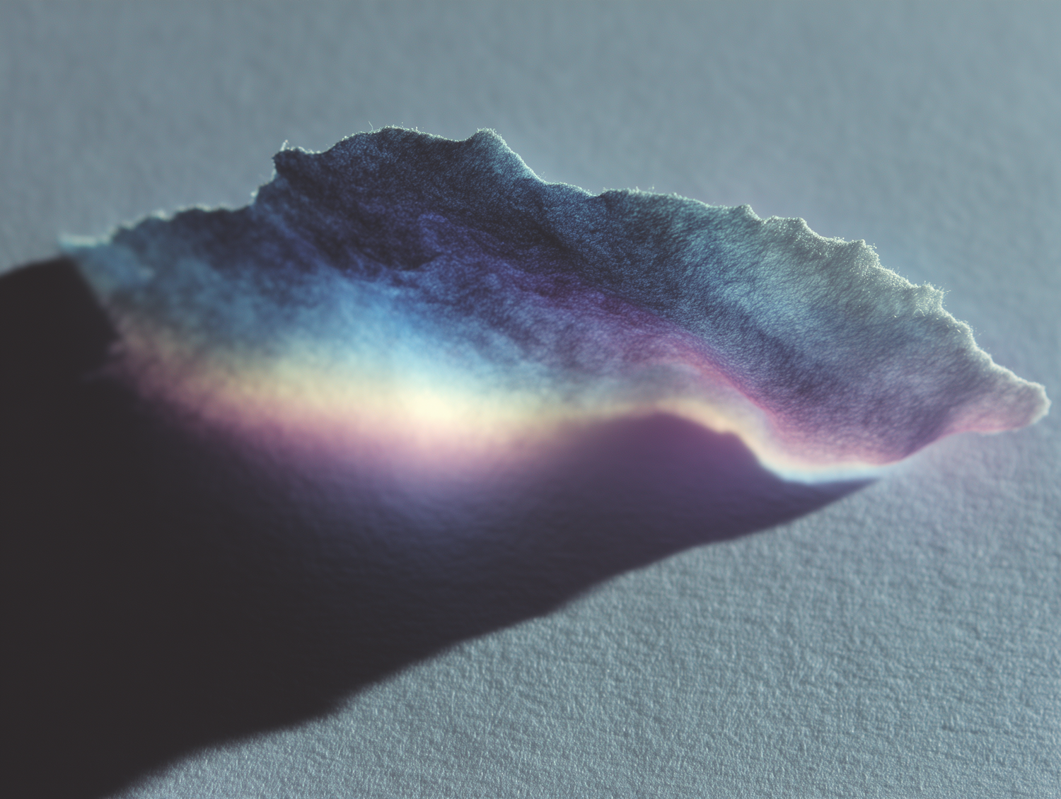 A textured material illuminated by soft, colorful light gradients, creating a striking visual contrast with its shadow.