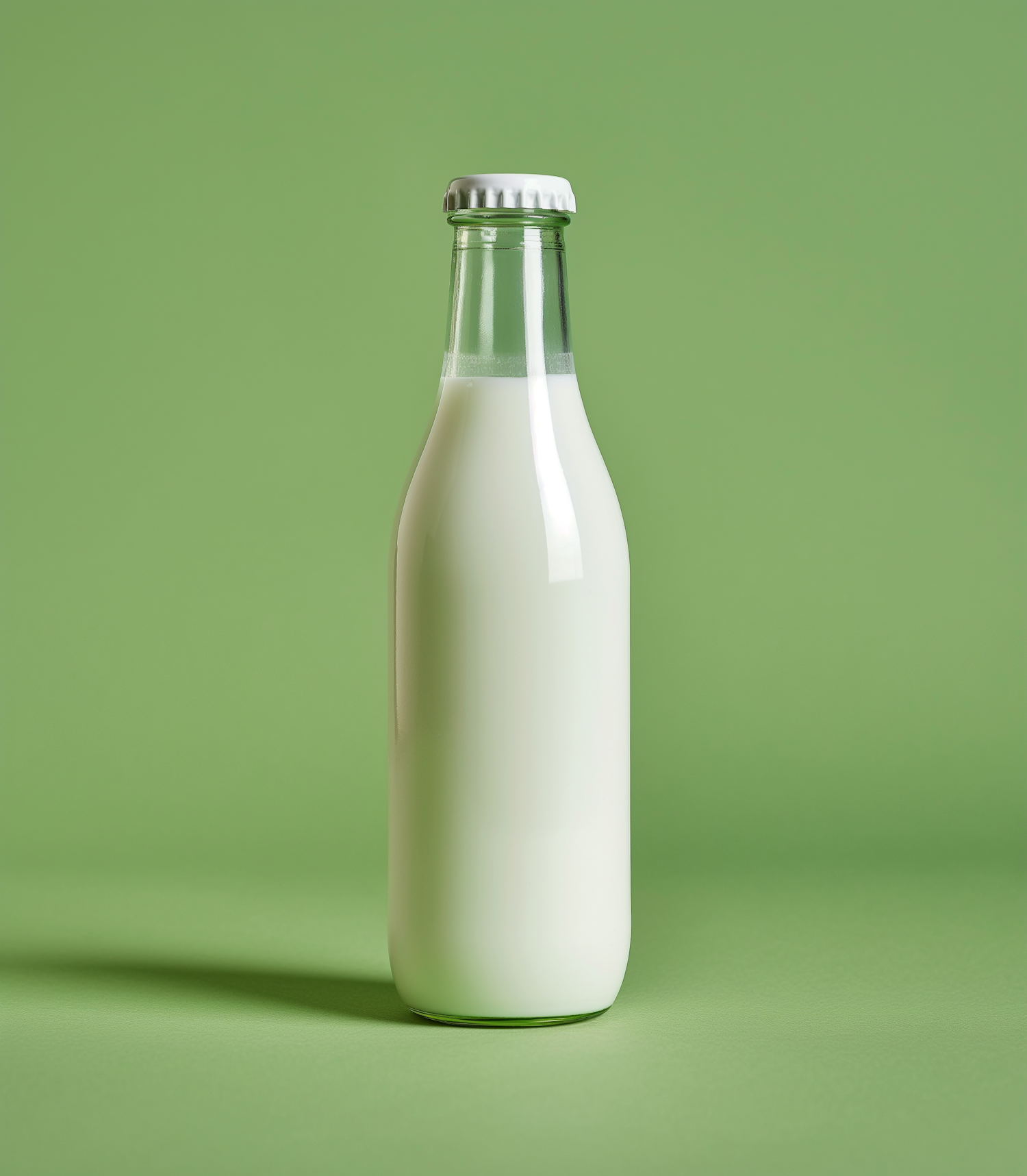 Green-Tinged Full Milk Bottle on a Light Green Background