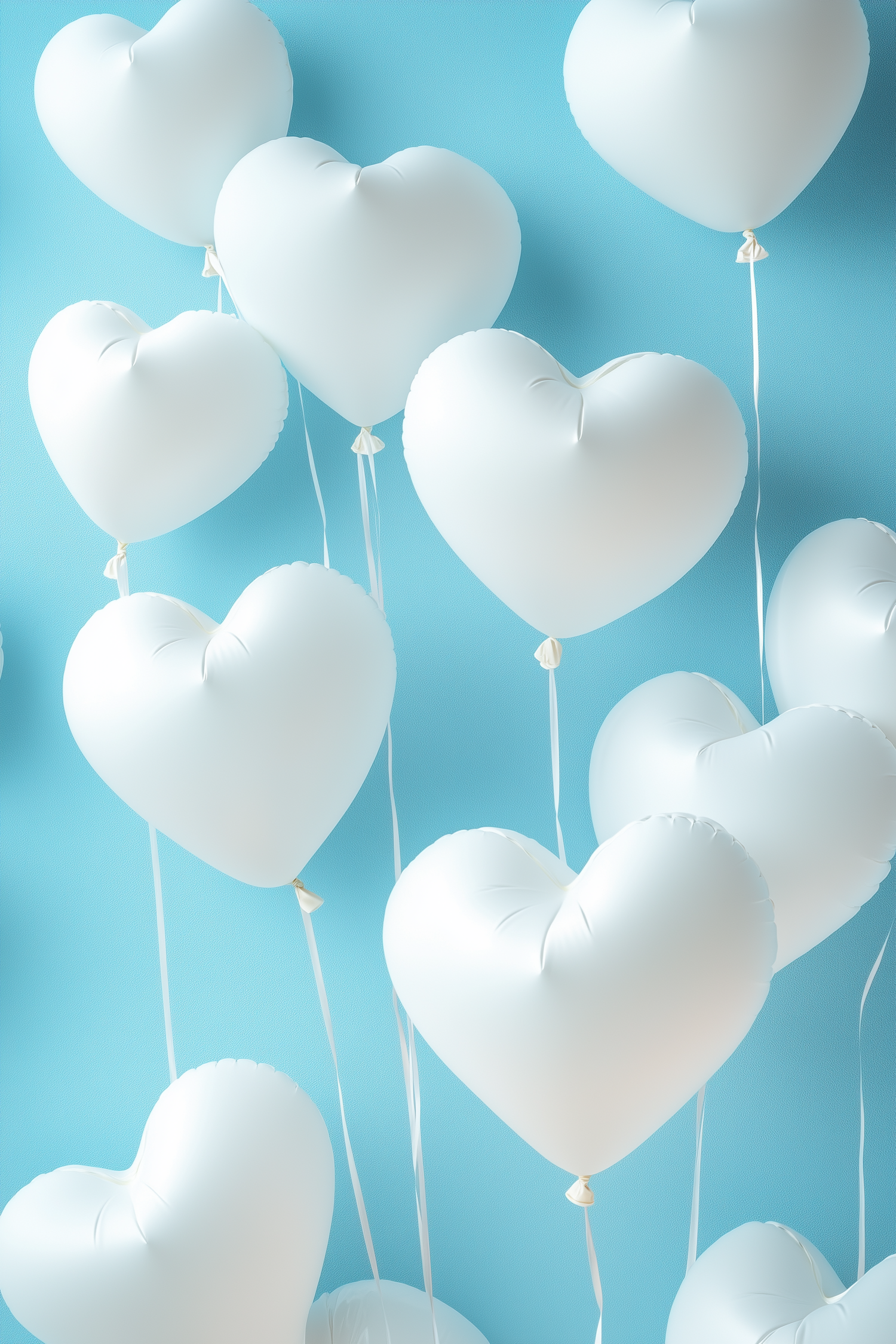 White heart-shaped balloons float against a bright blue background, creating a cheerful and romantic vibe perfect for celebrations.