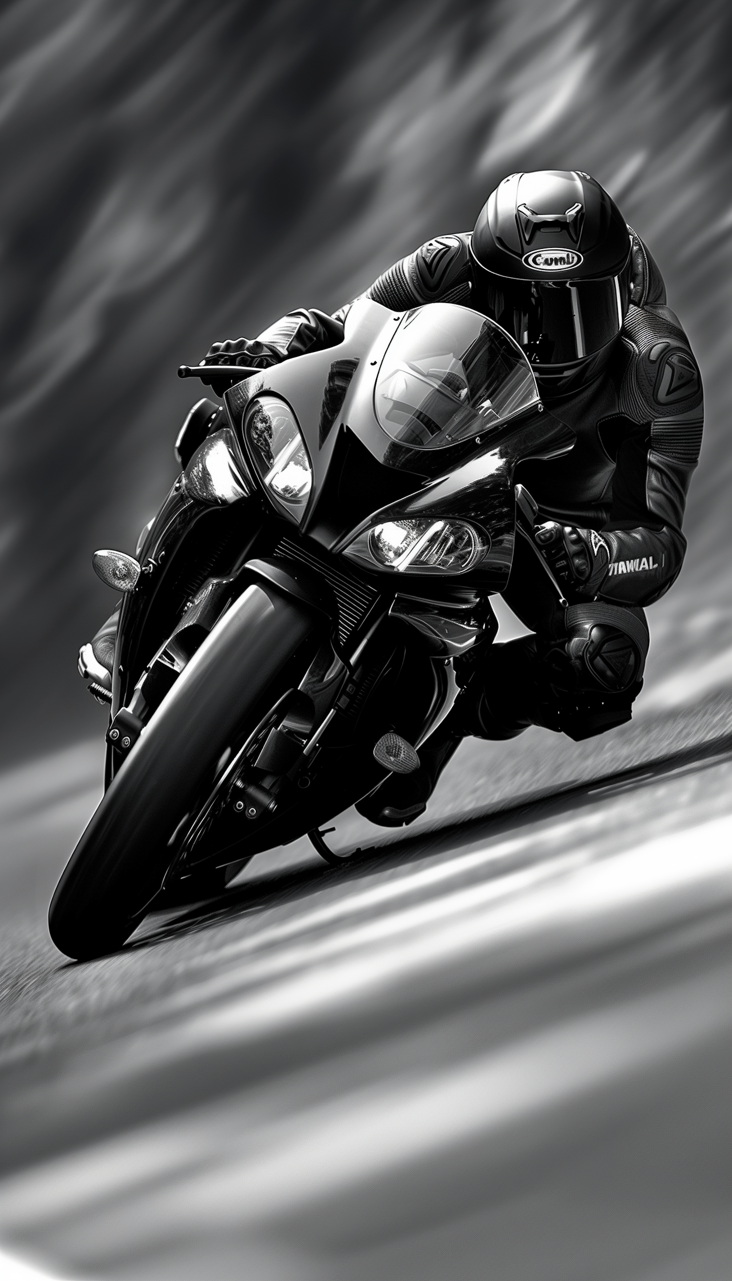 High-speed motorcyclist in sleek black gear leaning into a sharp turn, showcasing speed and agility against a blurred background.