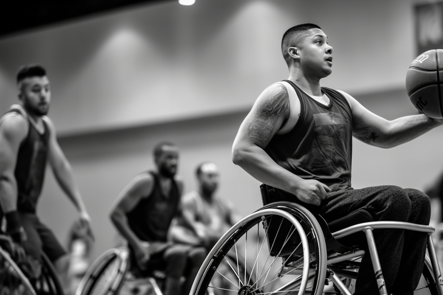 Determination in Motion: A Wheelchair Basketball Athlete's Focus